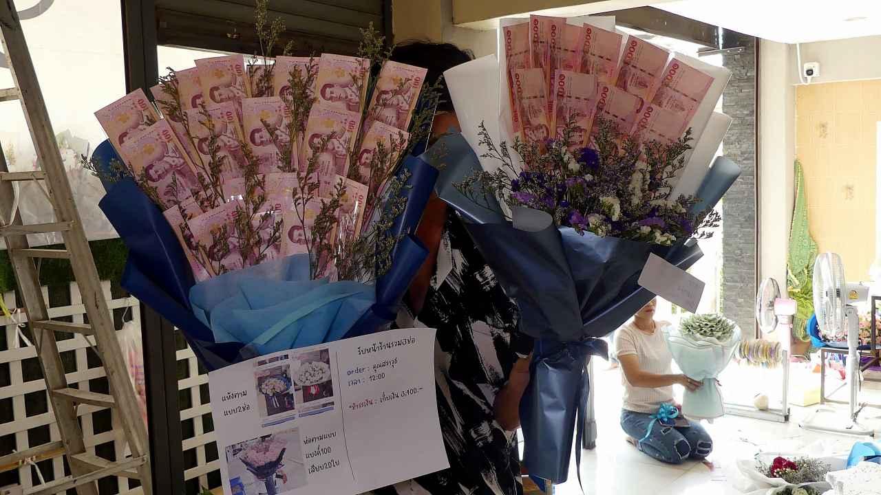 ร้านดอกไม้ชื่อดัง จ.ราชบุรี สร้างเซอร์ไพร์สรับเทศกาลวาเลนไทน์ เมื่อหนุ่มล้งมะพร้าว สั่งช่อดอกไม้ธนบัตร 1 แสนบาท พร้อมเผยเทศกาลวาเลนไทน์ปี 66 ออเดอร์ถล่มจนต้องปิดรับก่อน หลังจากพ้นวิกฤติโควิด