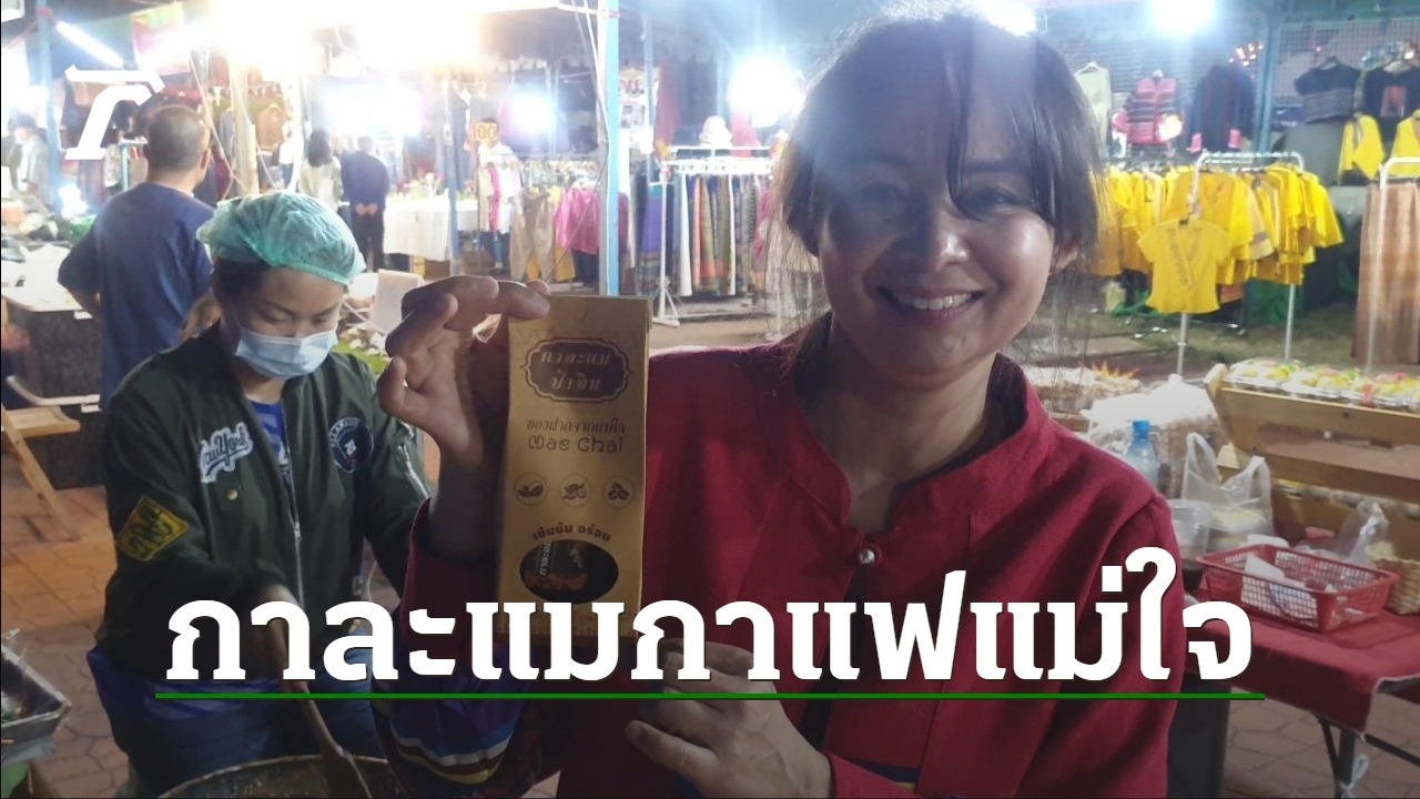 แม่ค้าเจ้าของร้านกาละแมป้าจิน ที่ อ.แม่ใจ จ.พะเยา ต่อยอดผลิตภัณฑ์นำวัตุดิบเมล็ดกาแฟบ้านปางปูเลาะ ที่เป็นแหล่งกาแฟชั้นดีของพะเยา นำมาแปรรูปทำกาละแมกาแฟ รสชาติดีลูกค้าแห่ออเดอร์ส่งขายทำไม่ทัน