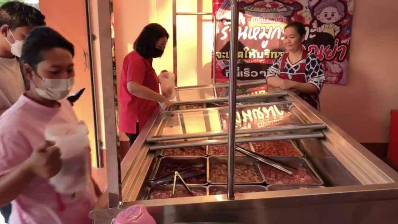 เมื่อวันที่ 22 ก.พ.2566 ผู้สื่อข่าวรายงานว่า ที่ร้านหมูกระทะคุณย่า ตึกแถวข้างตลาดสด ต.บ่อพลอย อ.บ่อไร่ จ.ตราด มาสุดแปลก เปิดร้านหมูกระทะซื้อกลับบ้าน เปิดบริการมา 8 ปีแล้ว เลยคิดไอเดีย อยากคืนกำไรให้กับลูกค้า จึงมีแนวคิดหากลูกค้ามาซื้อหมูกระทะ 1 กก.แถมน้ำอัดลมหนึ่งขวดและลุ้นจี้ทองคำ