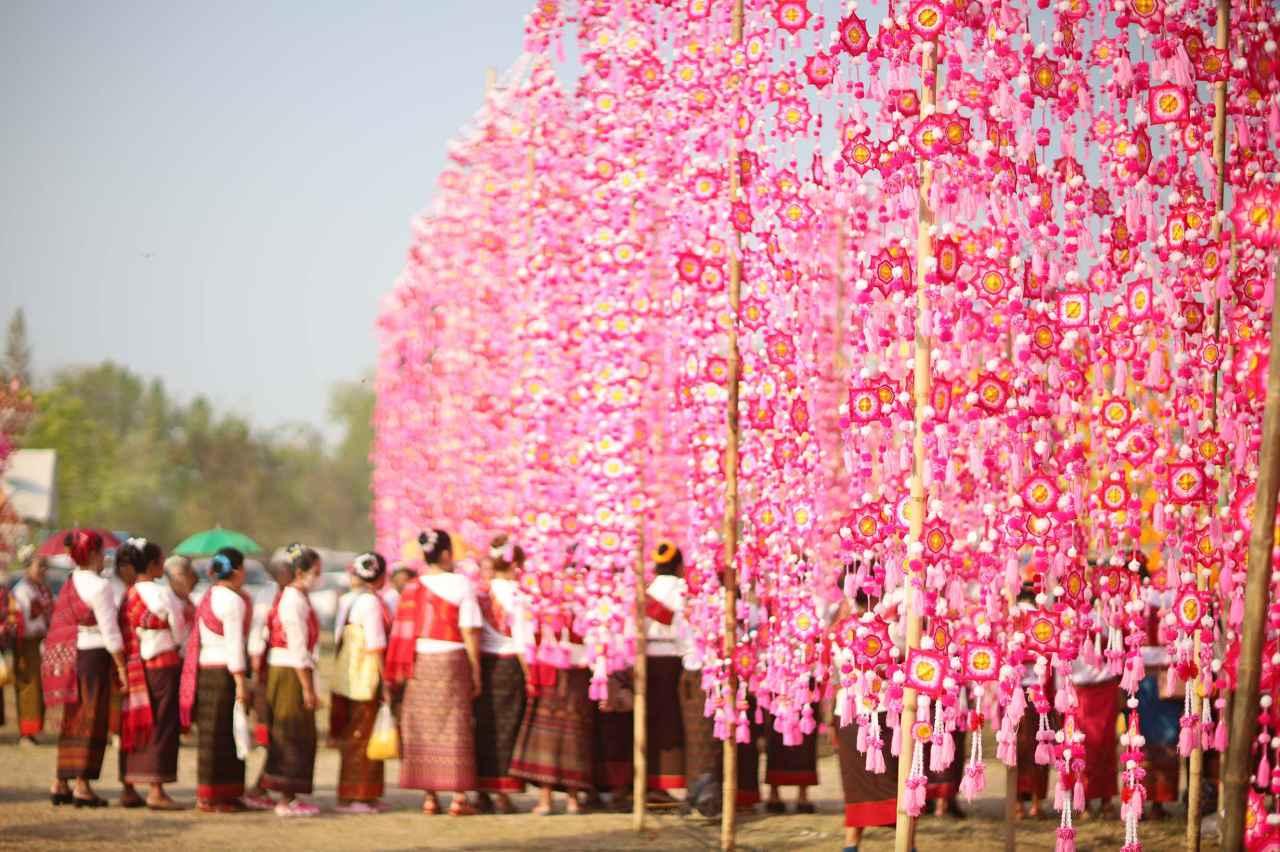 นายอำเภอกมลาไสย จ.กาฬสินธุ์ นำชาวบ้านประดิษฐ์ ธุงแก้วกมลา ลายมาตรฐานที่สร้างอัตลักษณ์และภาพจำใหม่ นำไปประดับในงานประเพณี "มาฆปูรณมีบูชา" ชมพูสวยงาม ตระการตา จนนักท่องเที่ยวฮือฮาเป็นอย่างมาก