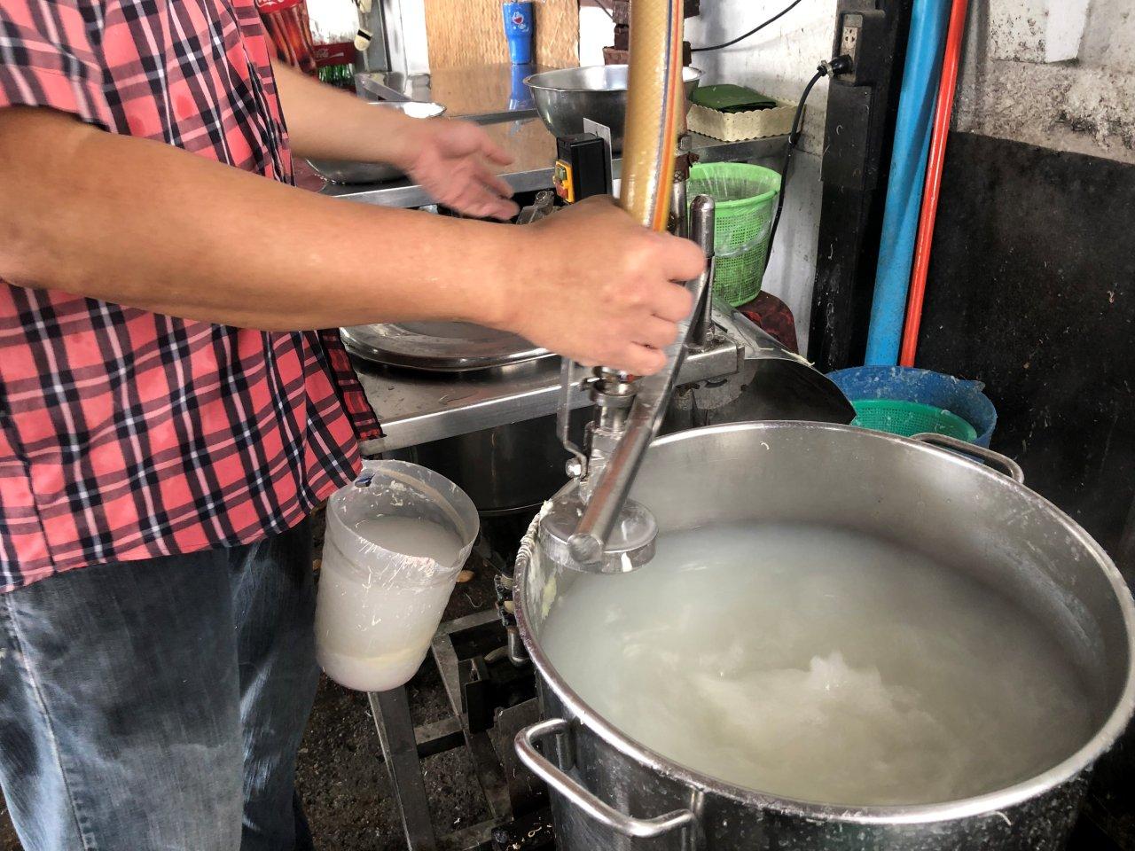 เมนูหลักของทางร้านจะเป็นขนมจีนเส้นสด ที่ผสมสมุนไพรในเส้นขนมจีนถึง 6 ชนิด ทางร้านจะนำสมุนไพรไปผสมกับแป้งและทำการคลุกเคล้าเข้ากันจนได้ที่ หลังจากนั้นก็จะทำเส้นขนมจีนที่มีส่วนผสมของสมุนไพรนำเข้าไปในเครื่องทำเส้น ที่จะทำเส้นขนมจีนลงไปในหม้อ ที่มีน้ำร้อนรออยู่ หลังจากที่เส้นขนมจีนเริ่มสุกได้ที่ก็จะตักไปใส่น้ำเย็นที่เตรียมไว้ 2 กะละมัง หลังจากนั้นก็จะทำให้เส้นขนมจีนเย็นตัวลง ทางร้านก็จะนำมาม้วนรวมกันเป็นก้อน จัดใส่เข่ง 5 ก้อน ให้ลูกค้าพร้อมเสิร์ฟ ลูกค้าที่มาทานขนมจีนสมุนไพรแม่เรียบ จะได้ทานเส้นขนมจีนที่สดใหม่ทุกวัน เพราะทางร้านทำกันให้เห็นสดๆ จริงๆ