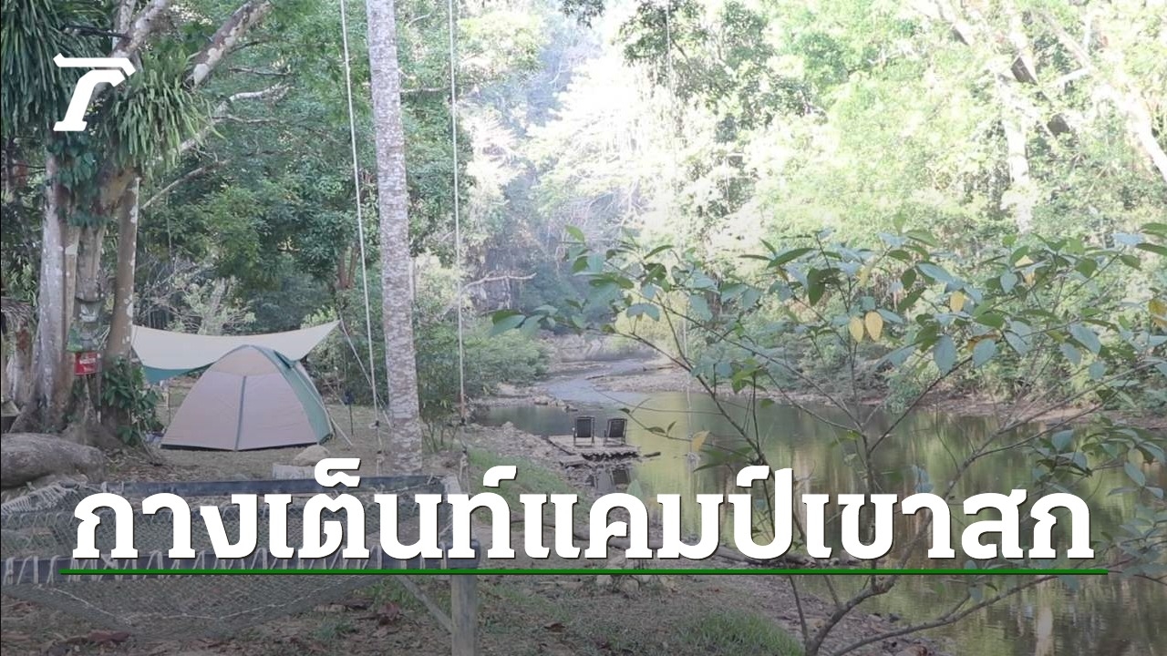 ผู้สื่อข่าวรายงานว่า ช่วงเวลานี้บรรยากาศยามเช้าที่ริมคลองศก ที่เป็นสายน้ำที่รับน้ำจากอุทยานแห่งชาติเขาสก มีที่จุดกางเต็นท์ที่อยากแนะนำ คือ เขาสกมังกี้ & ริเวอร์แคมป์ ที่แห่งนี้ผู้ที่มาแคมป์จะได้ยินเสียงสัตว์และแปลงนานาชนิด พร้อมเสียงน้ำไหลเอื่อยในลำธาร โดยเป็นเสียงที่ช่วยในการบำบัดจิตใจให้ได้รับความสงบได้เป็นอย่างดี เป็นช่วงเวลาที่นักท่องเที่ยวที่มากางเต็นท์นอนกัน เมื่อตกกลางคืนจะได้ตื่นมาล้อมวงจิบกาแฟ และตื่นมารับประทานอาหารเช้าแบบชาวค่ายที่เตรียมกันมาเอง ขณะที่ กลุ่มที่เป็นครอบครัว เด็กๆ ก็ลงเล่นน้ำในคลอง ที่ตอนนี้น้ำไม่ลึกแต่ไหลตลอดเวลา ทำให้น้ำใสสะอาด เหมาะแก่การผักผ่อนสร้างความอบอุ่นในครอบครัว และความสามัคคีในกลุ่มเพื่อน