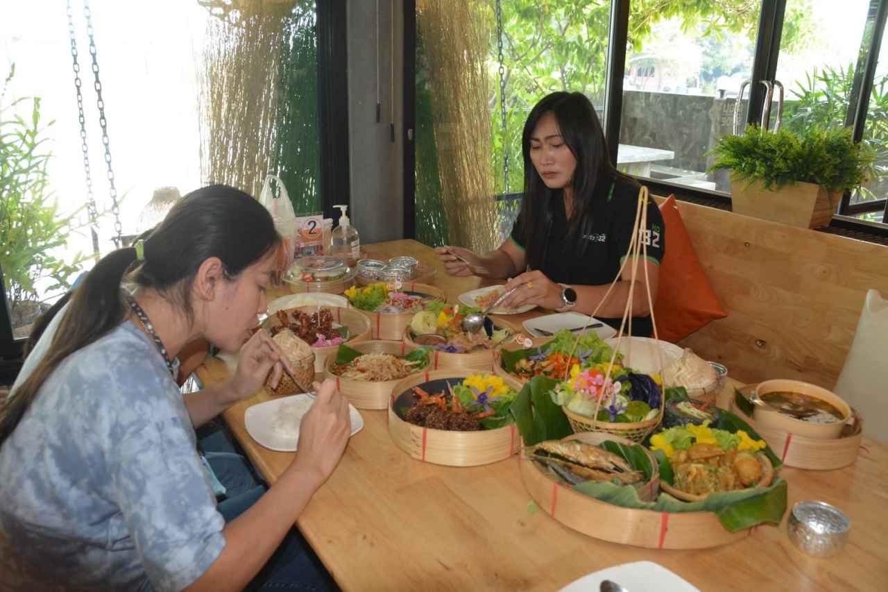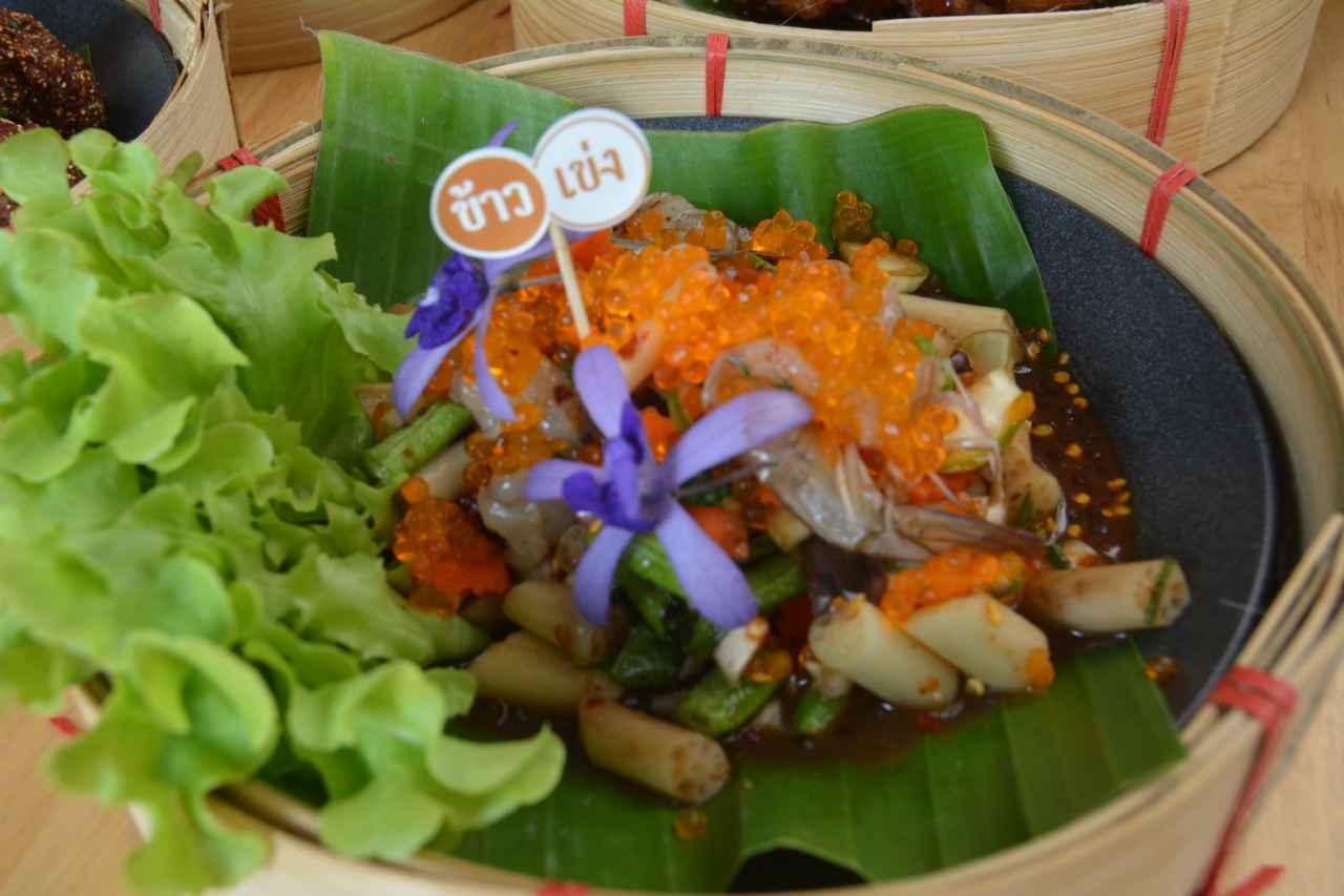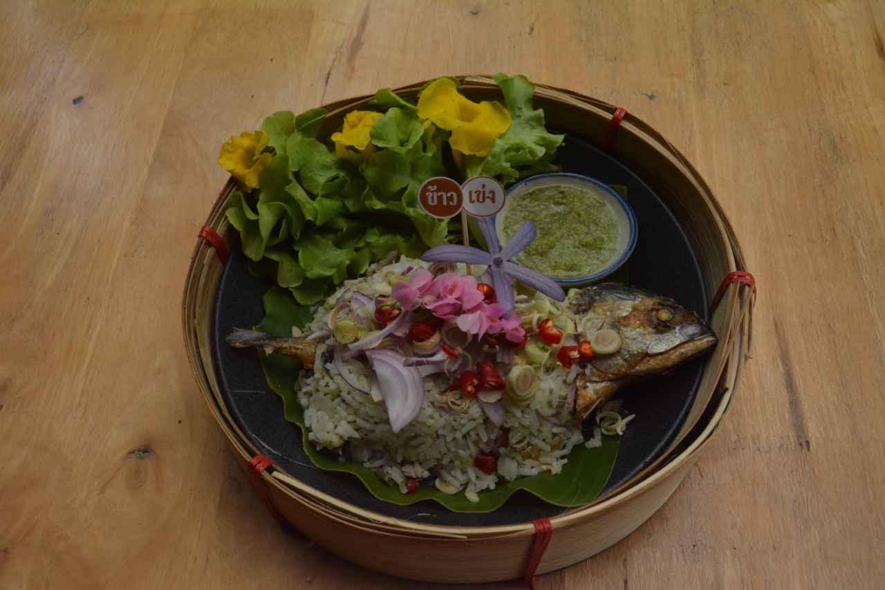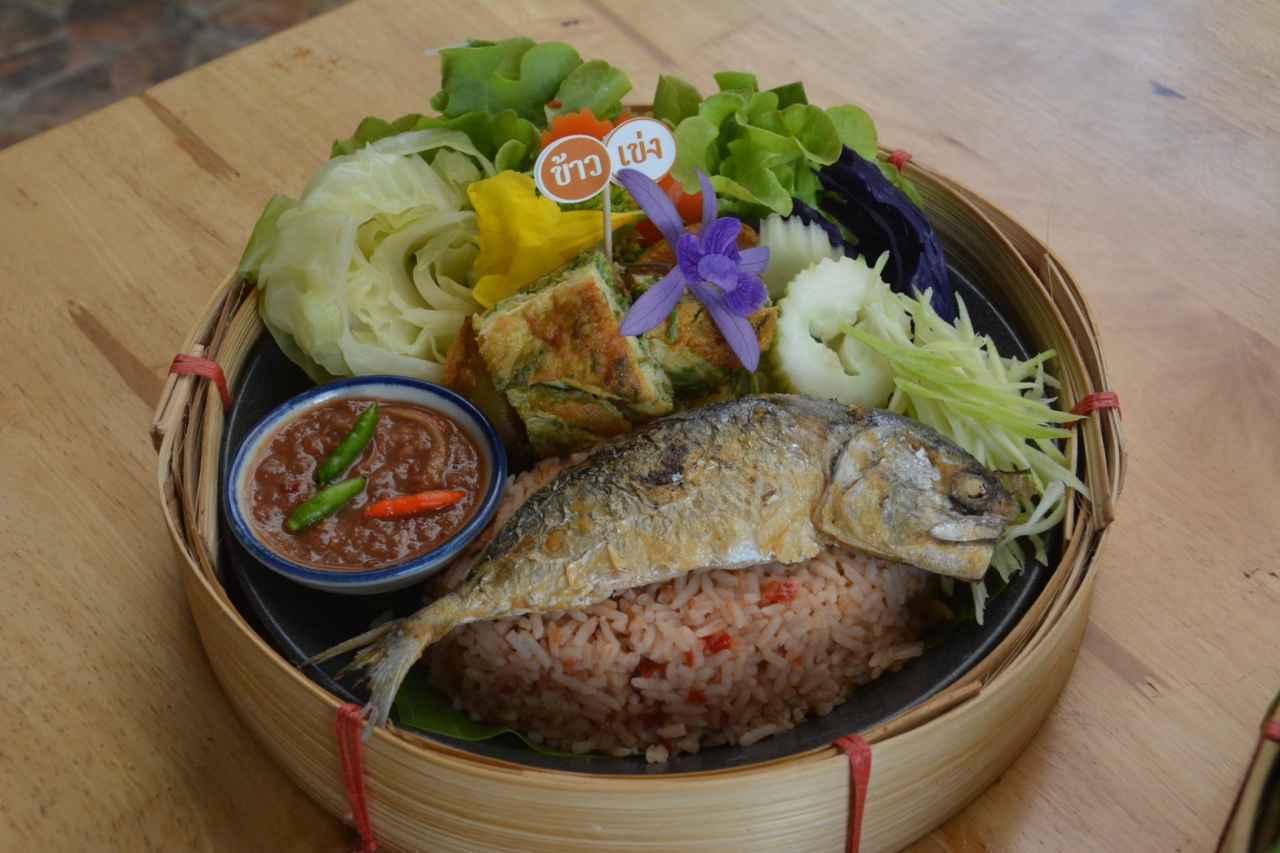 เพลิดเพลินกับอาหารไทยพื้นบ้าน ตามสโลแกนร้าน "อร่อยรส อร่อยตา อร่อยใจ" ที่ ร้านข้าวเข่ง สุพรรณบุรี กับเมนูอาหารไทยอร่อยๆ ข้าวคลุกน้ำพริก เสิร์ฟใส่เข่งปลาทู สไตล์เบนโตะแต่คงความเป็นไทยไว้