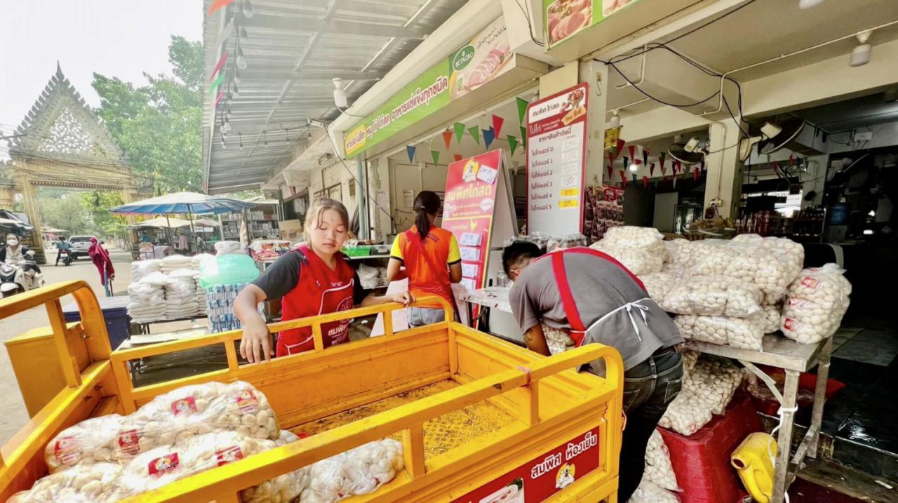 ด้าน น.ส.กฤษฎาพร ธรรมม่วงไทย หรือ แน้ม เจ้าของร้านเนื้อไก่สมพิศ เปิดเผยว่า ที่ร้านเปิดจำหน่าย เนื้อไก่สด เนื้อหมูสด ลูกชิ้น ไส้กรอก สินค้าแช่แข็ง ซอสปรุงรส วัตถุดิบต่างๆ ขายในราคาปลีกและส่ง สำหรับลูกชิ้น น้ำจิ้ม เริ่มมีลูกค้า มาซื้อไปเป็นของชำร่วย แจกในงานบุญ งานบวช ตั้งแต่ช่วงโควิดที่ไม่อนุญาตให้จัดเลี้ยง ด้วยที่ร้านผลิตลูกชิ้นเอง ใหม่สดทุกวัน แถมจำหน่ายในราคาถูก จึงทำให้ทุกวันนี้มีคนสนใจ มาติดต่อซื้อไปเป็นของชำร่วยจำนวนมาก นอกจากนี้ถ้าลูกค้าซื้อเยอะหรือซื้อไปทำบุญ ทางร้านจะมีส่วนลดให้ และร่วมทำบุญอีกจำนวนหนึ่งอีกด้วย.