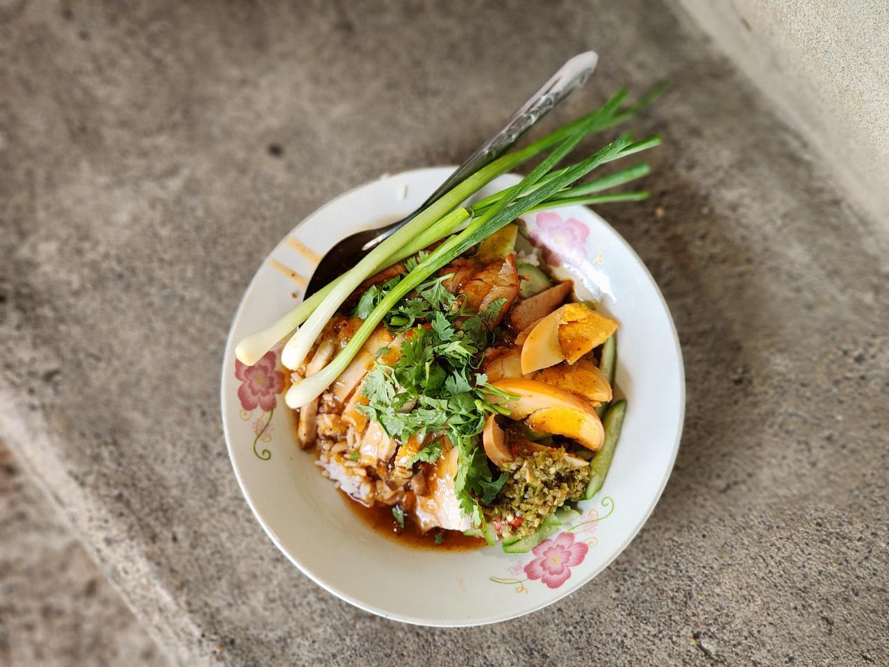 ร้านนี้มี นายวันชัย อยู่กิจติชัย เจ้าของร้านลุงอ้วนข้าวหมูแดง กำลังหั่น สับ ซอย ทั้งหมูแดง หมูกรอบ และแตงกวา อย่างขมีขมัน ด้วยความคล่องแคล่ว ก่อนจัดวางเรียงหมูบนข้าวสวยร้อนๆ ราดด้วยน้ำซอสหมูแดง และน้ำส้มดองสูตรพิเศษ เสิร์ฟให้ชาวไทยและต่างชาติที่นั่งรออยู่บนเรือนำเที่ยวและเก้าอี้ริมท่าน้ำ ซึ่งเป็นร้านที่ได้รับความสนใจเป็นอย่างมาก จนต้องทำป้ายเมนู 3 ภาษา คือ ภาษาไทย อังกฤษ และจีน