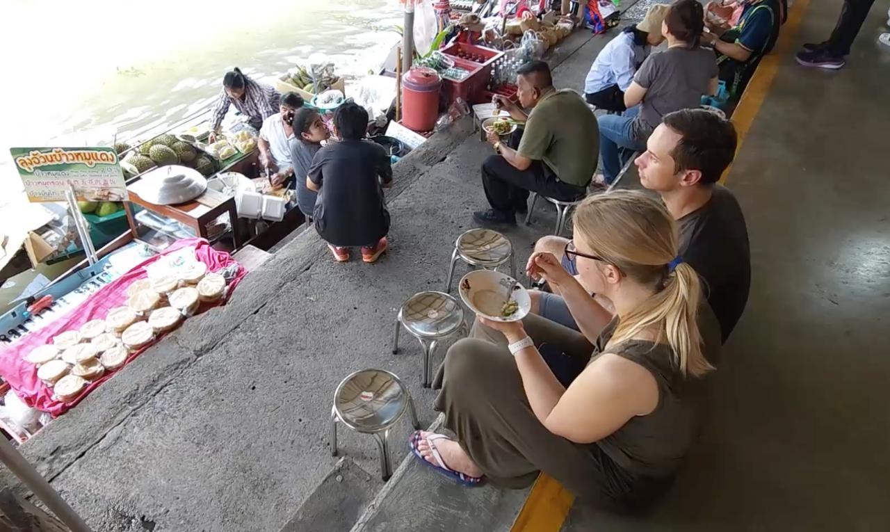 ผู้สื่อข่าวเดินทางไปที่ ตลาดน้ำดำเนินสะดวก อ.ดำเนินสะดวก จ.ราชบุรี หลังทราบว่ามีร้านข้าวหมูแดงรสเด็ด นั่งขายกันบนเรือ และเป็นร้านเก่าแก่กว่า 40 ปี มีนักท่องเที่ยวทั้งชาวไทยและชาวต่างชาติ ชื่นชอบกันเป็นจำนวนมาก จนได้เป็นอีกหนึ่งเมนู soft power แห่งตลาดน้ำดำเนินสะดวก ที่ใครมาแล้วต้องห้ามพลาด