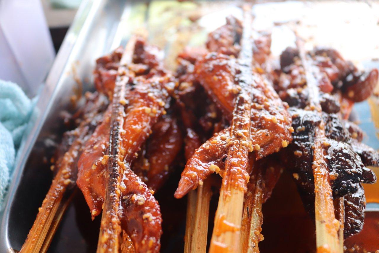 ผู้สื่อข่าวรายงานว่า ที่บริเวณหน้าสำนักงานสรรพากรพื้นที่ตรัง มีร้านรถเข็นขายไก่ย่างทรงเครื่องถั่วลิสงสูตรแม่คิดเอง ของ น.ส.สุดคะนึง เอ็งเส็ง หรือก้อย อายุ 42 ปี ชาวบ้าน ม.3 ต.โคกหล่อ อ.เมืองตรัง เป็นไก่ย่างสูตรเด็ดแม่คิดเอง ขายดิบขายดีมานานกว่า 30 ปี ขายไก่ย่างวันละกว่า 200 ไม้ สร้างรายได้ 3,000 บาท/วัน ลูกค้ายืนออต่อคิวซื้อ ท่ามกลางบรรยากาศกลิ่นอายของไก่ย่างที่โชยกลิ่นควันไปจากเตาย่างไก่ฟุ้งกระจาย ลูกค้าบางคนรอคิวซื้อกลับบ้านไม่ไหว ต้องหยิบไก่มายืนกินรองท้องก่อนตรงบริเวณหน้าร้าน