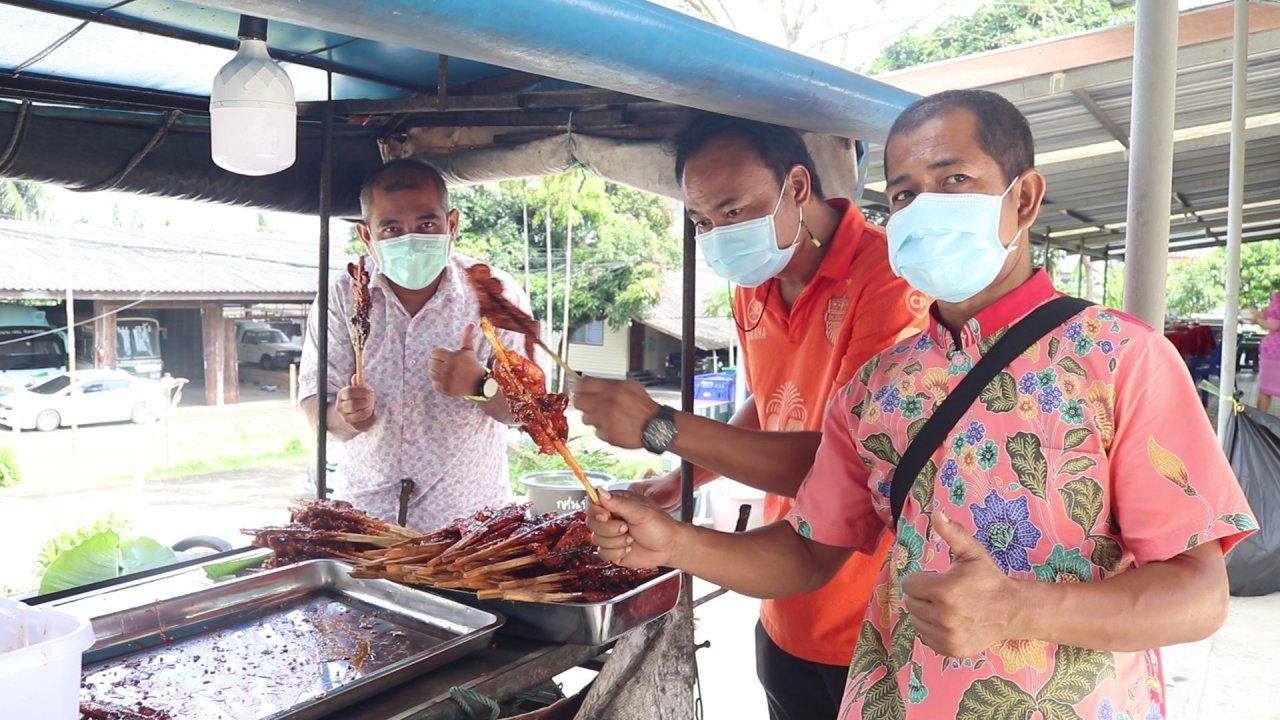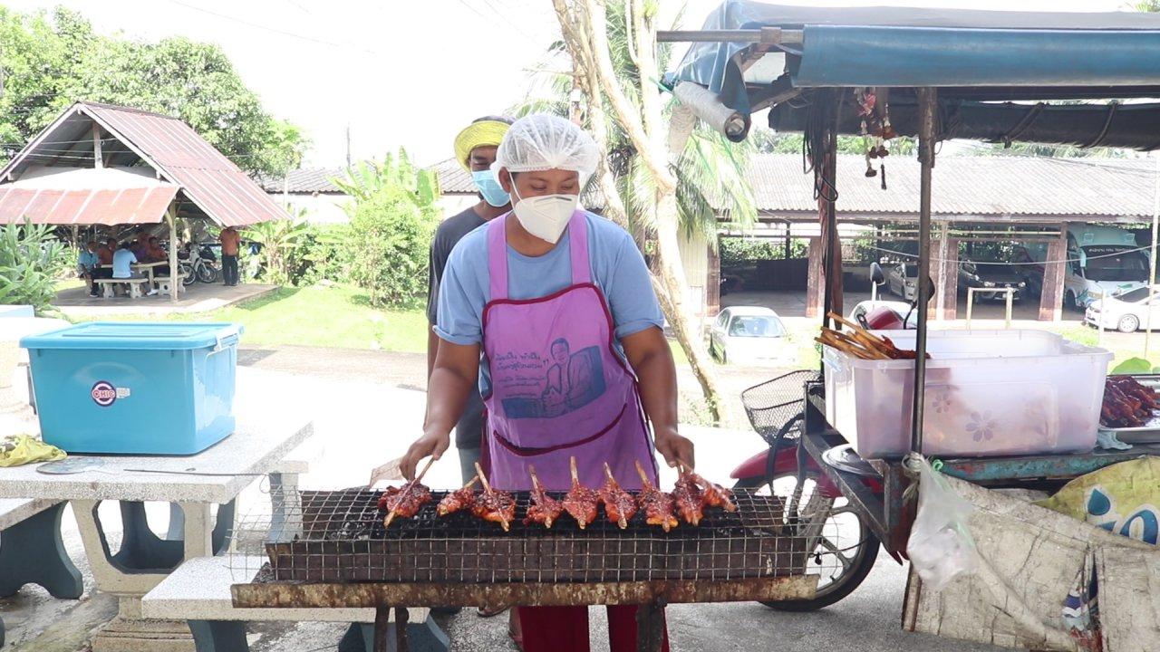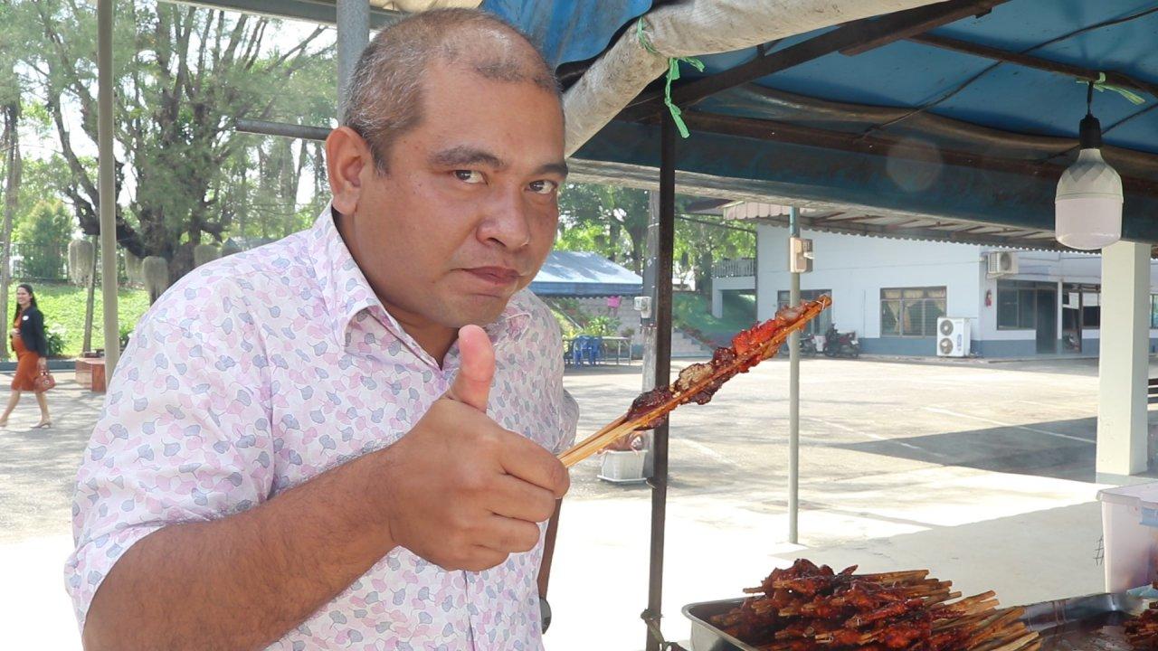 ใครๆ ก็บอกให้ไปลอง ไก่ย่างทรงเครื่องถั่วลิสง สูตรเด็ดแม่คิดเอง เป็นรถเข็นหน้า สนง.สรรพากร จ.ตรัง มีมากว่า 30 ปี ขายดิบขายดีต้องใช้ไก่ย่างวันละกว่า 200 ไม้ คนรอต่อคิวซื้อเพียบ ทำรายได้วันละกว่า 3 พันบาท