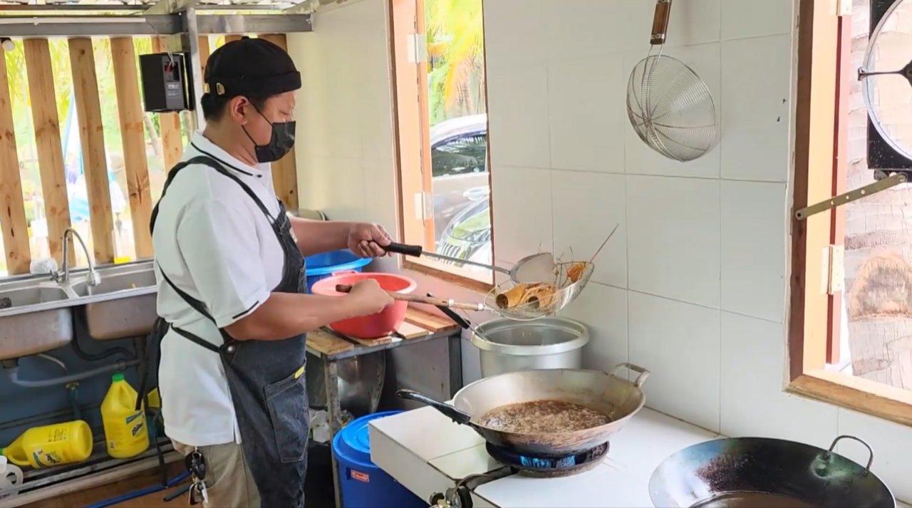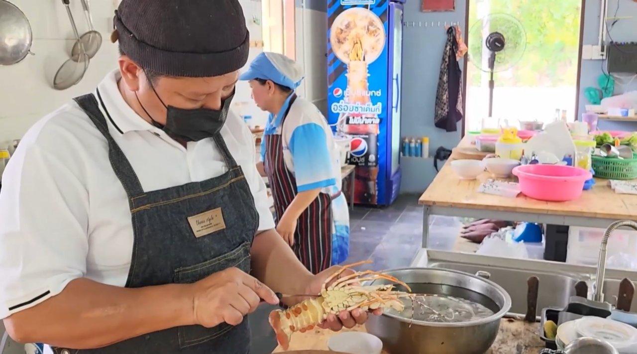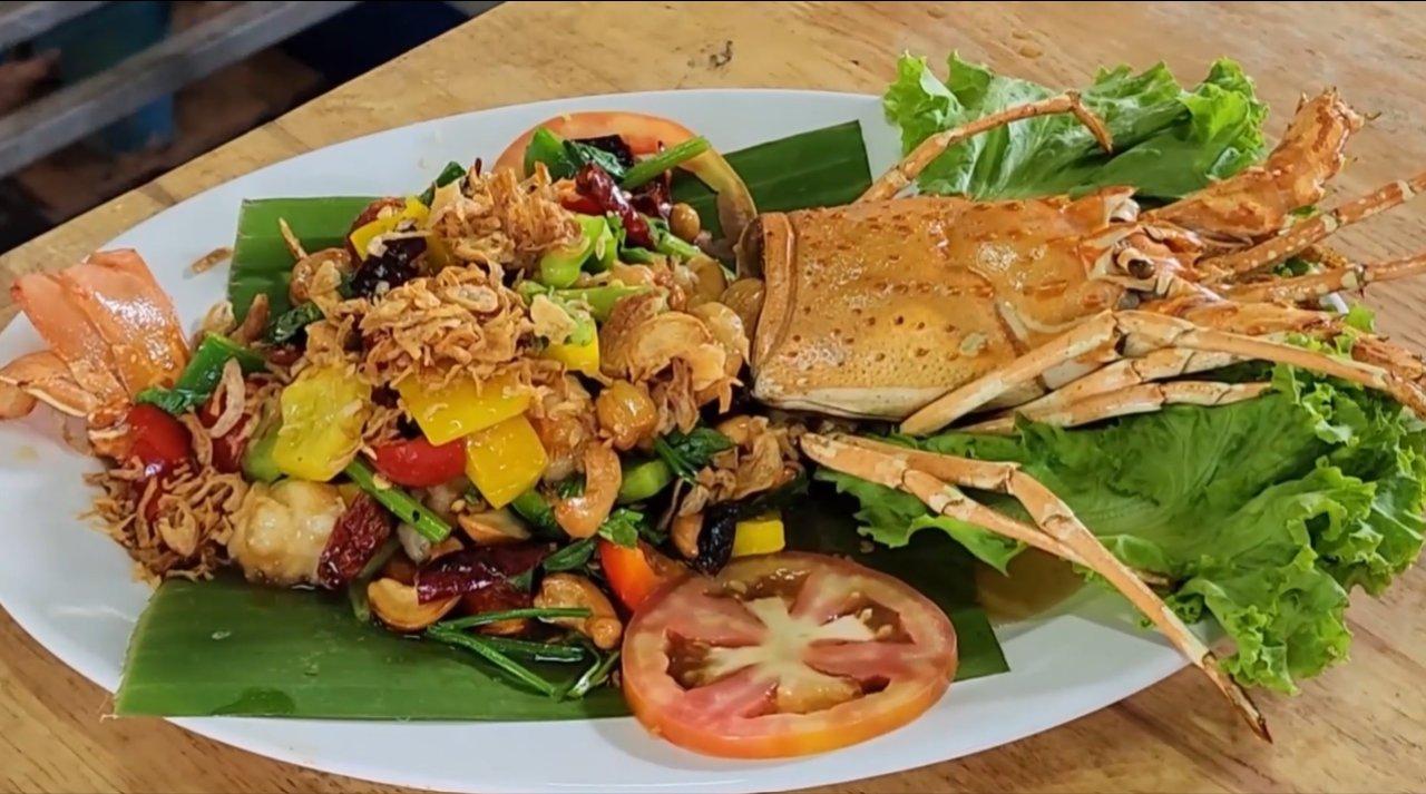 เริ่มจากนำกุ้งมังกรเข้ามาขาย เนื่องจากแถวนี้ยังไม่มีใครขายเพราะราคาแพง แต่ร้านของตนอยู่ท่ามกลางสวนมะพร้าวไม่ใช่ห้องแอร์จึงลดต้นทุนตรงนั้น แล้วเอามาทุ่มเทในการหากุ้งมังกรที่มีคุณภาพมาขายให้คนในชุมชนและใกล้เคียงได้ลิ้มลอง โดยใช้เกรดเดียวกับที่ทำซาชิมิ แต่ราคาตามน้ำหนักเริ่มต้นที่ตัวละเพียงแค่ 400 บาท หากเทียบเกรดเดียวกับร้านอาหารหรูๆ ถือว่าถูกมาก เมนูเด่นคือกุ้งมังกรคั่วพริกเกลือ และกุ้งมังกรผัดซอสมะขาม เนื้อกุ้งมีความนุ่มเด้งเข้ากับสมุนไพร และซอสรสจัดจ้านได้กลมกล่อมมากๆ แต่ก็ไม่เผ็ดจนเกินไปเนื่องจากที่นี่เขาเน้นให้ลูกค้าทุกเพศทุกวัย ได้เข้ามาทานกันแบบครอบครัว โดยเฉพาะผู้สูงอายุที่เดินเหินไม่สะดวกต้องนั่งวีลแชร์ ทางร้านก็ออกแบบให้รถเข็นเข้าได้สะดวกทุกโต๊ะ