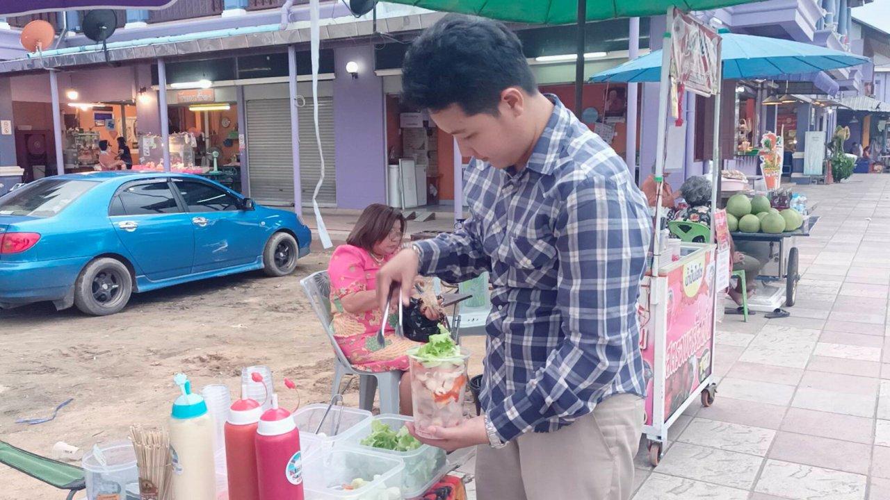 2 วัยรุ่นเปิดร้านขายไส้กรอกรมควันในตลาดริมน้ำสะแกกรัง ย้อนยุคการเกิดร้านสะดวกซื้อดังใหม่ๆ สมัยยังเติมซอสและผักสดได้ไม่อั้น ราคาก็แสนถูก ด้านคนกินก็ได้อร่อย เหมือนย้อนเวลากลับไปสมัยเด็กๆ