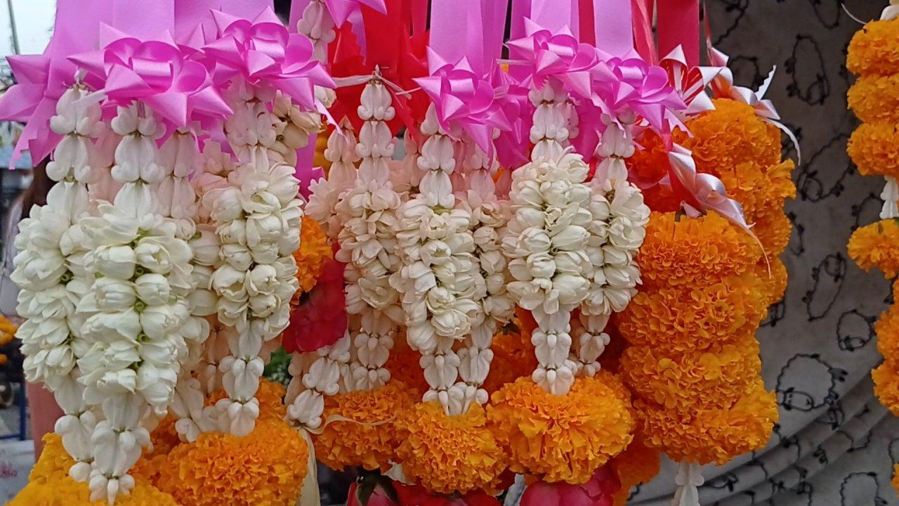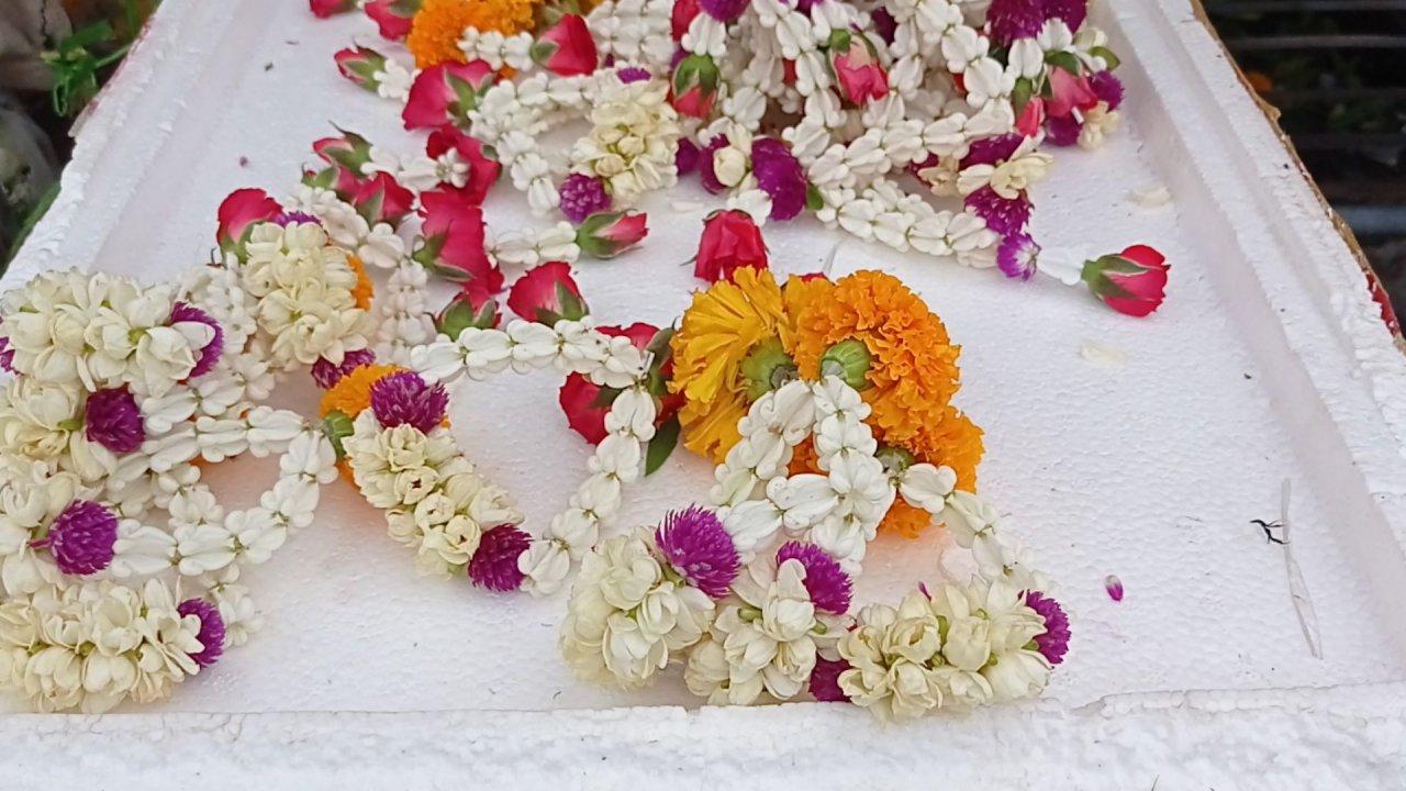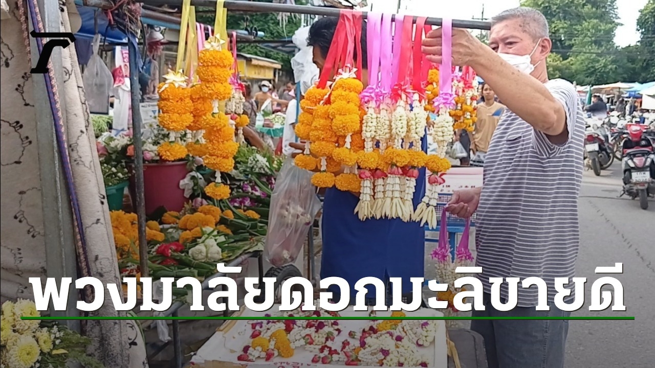 แม่ค้าขายพวงมาลัยดอกมะลิ ที่ ตลาดจอแจ อ.พิมาย นครราชสีมา เผยช่วงใกล้วันแม่ 12 ส.ค. พวงมาลัยขายดีมาก แม้ราคาดอกมะลิเพิ่มเท่าตัว จาก 400 เป็น 700-800 บาท ลงทุน 2 หมื่นหักแล้วยังได้กำไร 4-5 พันบาทต่อวัน ส่วนวันปกติรายได้วันละราวๆ 2,000 บาท