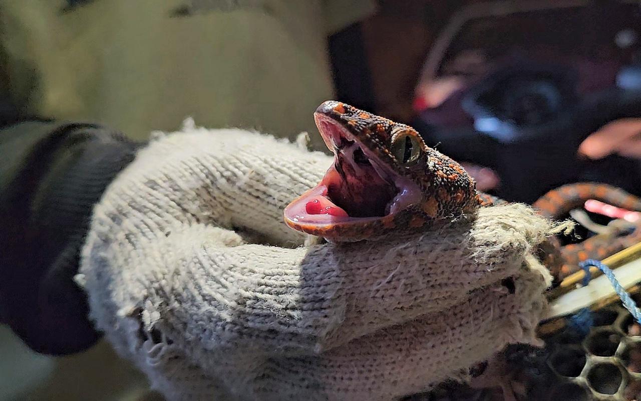 วันที่ 20 สิงหาคม 2566 ทีมข่าวได้พบกับ น.ส.นิ่ม อายุ 32 ปี ชาวบ้านสวาย ต.สวาย อ.เมือง จ.สุรินทร์ กำลังใช้บ่วงคล้องคอตุ๊กแกที่เกาะอยู่ผนังบ้าน โดยขับรถจักรยานยนต์ตระเวนไปตามบ้านพักช่วงเวลากลางคืนพร้อมกับไฟส่องสว่างคาดศีรษะ เพื่อจับตุ๊กแกตามบ้านเรือนที่เปิดไฟ เพราะตุ๊กแกจะออกมากินแมลง ซึ่งวันนี้ น.ส.นิ่ม ได้ตุ๊กแกอยู่ในข้องใส่ปลากว่า 30 ตัวแล้ว โดยจะนำไปขายให้กับเอเย่นต์ส่งออกตุ๊กแก สร้างรายได้ถึงวันละกว่า 1,000 บาท