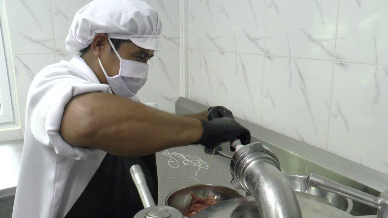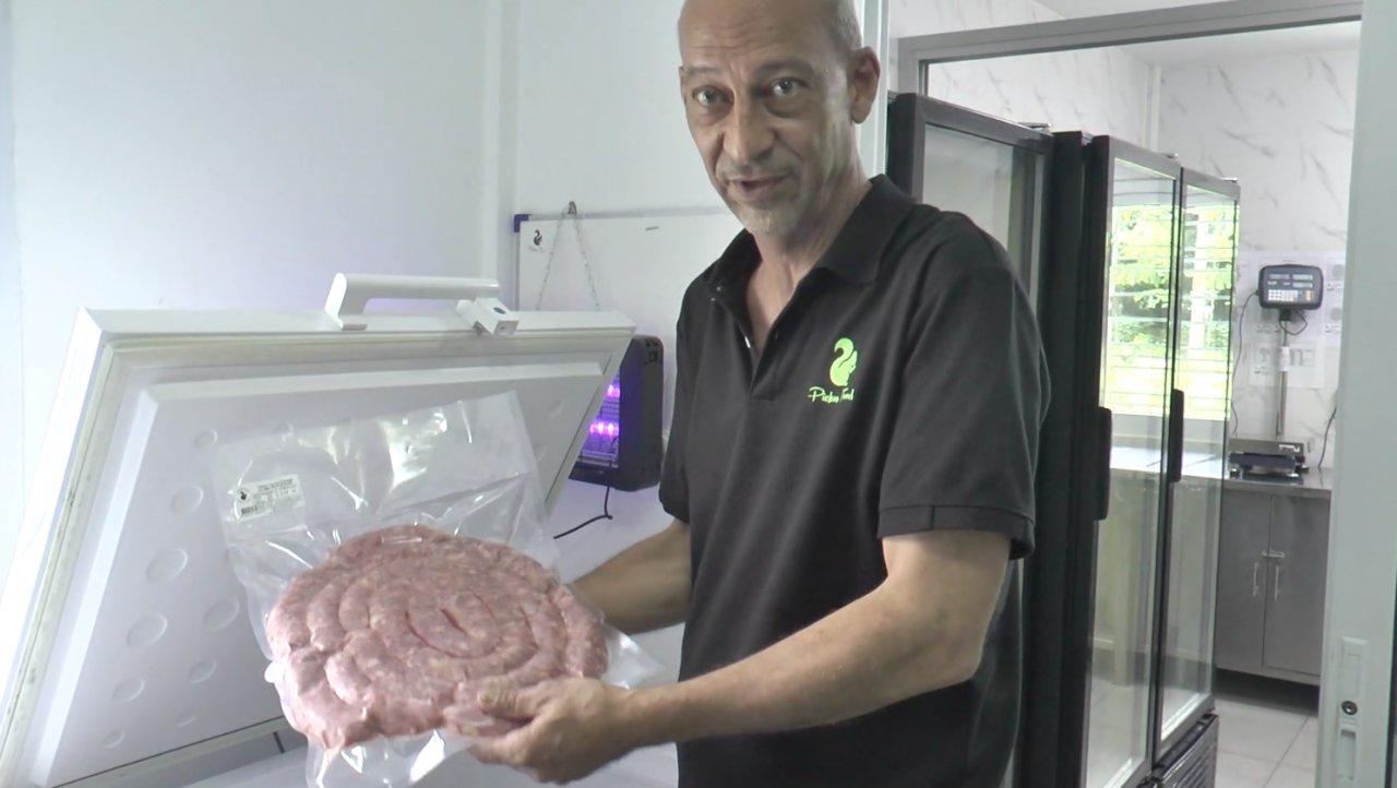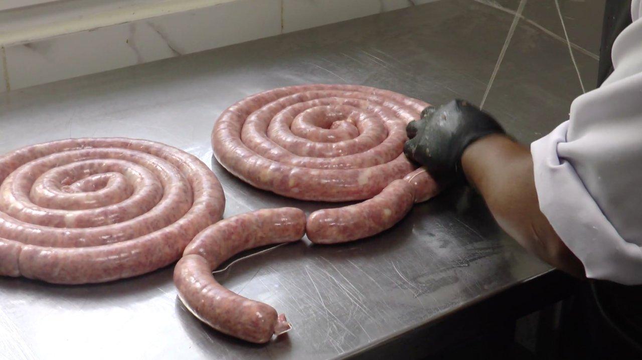 นายเอเดรียล ได้เปิดโอกาสให้เข้าไปดูการผลิตไส้กรอก สไตล์อิตาเลียน ที่บ้านดงบัง อ.ประจันตคาม จ.ปราจีนบุรี ในอาคารหลังเล็กที่ถูกออกแบบให้เป็นสถานที่ผลิตไส้กรอก สำหรับวัตถุดิบหลัก คือ เนื้อหมูที่บอกว่าเลือกใช้เฉพาะตรงไหล่หมู หรือ บ่าขาหน้าหมู ที่เป็นส่วนที่เหมาะกับการทำไส้กรอก ส่วนมันก็จะเลือกเฉพาะไขมันส่วนหลังของหมูเพราะเป็นมันแข็งมาหั่นเป็นลูกเต๋า เมื่อนำมาบดจะไม่เละ ที่นี้จะผสมวัตถุดิบด้วยมือไม่ใช้เครื่อง ส่วนไส้ที่จะนำมาใช้ จะใช้ไส้หมู และไส้แกะ นำเข้าจากต่างประเทศ เหมือนกับเครื่องปรุงก็จะนำเข้าเช่นกัน