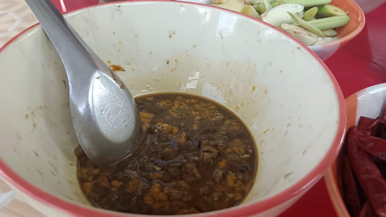 ส่วนกระดองเมื่อขูดมันปูออกแล้วก็นำทิ้งไป ส่วนตัวและขา รวมถึงก้ามปู ให้ใส่ลงในครก โขลกหรือตำให้ละเอียด เพื่อเอาน้ำปู จากนั้นตักออกจากครกมากรองเอาแต่น้ำปู แล้วเอาเศษปูทิ้ง ต่อมานำน้ำปูที่ได้มาตั้งบนเตาไฟ จนน้ำเริ่มเดือด แล้วใส่เผือก หรือมะละกอ หั่นเป็นชิ้นๆ ใส่ลงไปในหม้อ ตามด้วยข่า ตะไคร้ แล้วเทมันปูที่ได้ขูดออกจากกระดองลงไป ตามด้วยพริกแห้งตำละเอียด จากนั้นคนให้เข้ากัน แล้วเริ่มขั้นตอนการปรุงรส ใส่ผงชูรส ข้าวคั่ว หัวหอม ปลาร้าต้มสุก ใบมะขามอ่อน ผักแขยง เพื่อเพิ่มกลิ่นและรสชาติ จะมีกลิ่นหอมโชย เมื่อสุกได้ที่แล้ว จากนั้นก็ตักเสิร์ฟพร้อมชิมกับข้าวสวยร้อนๆ ขอบอกเลยว่าอร่อยไม่รู้ลืมแน่นอน
