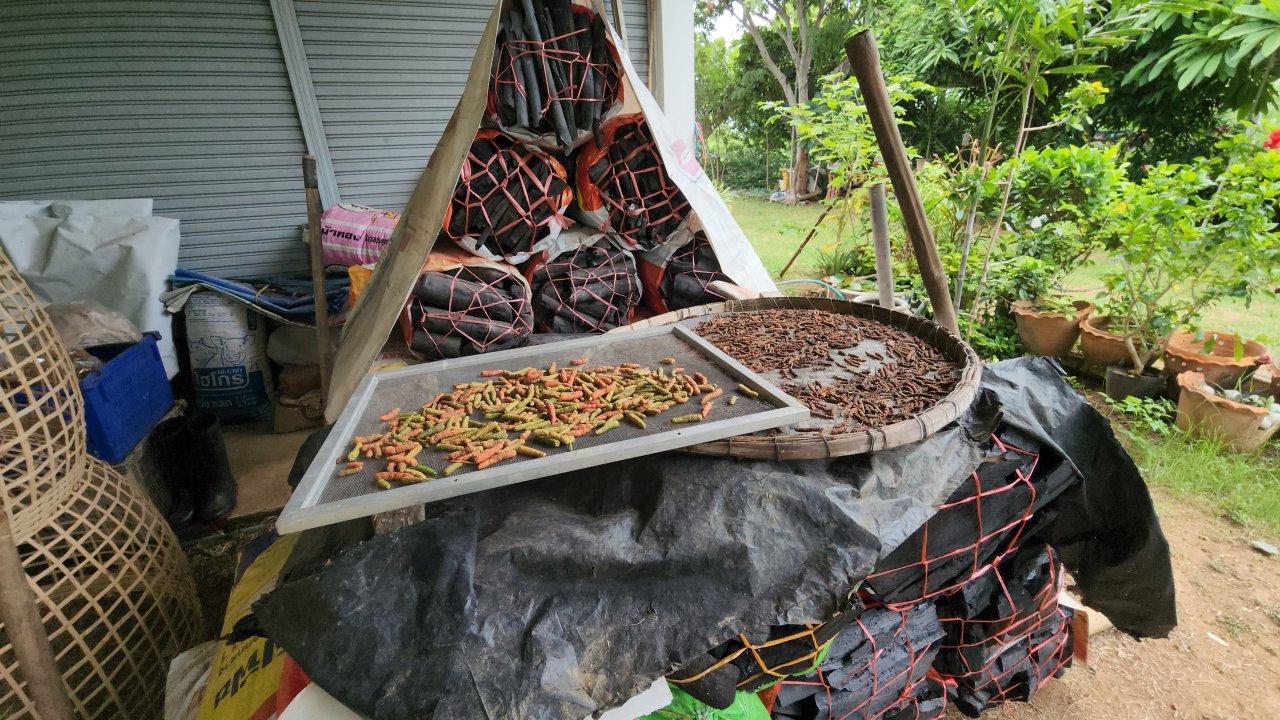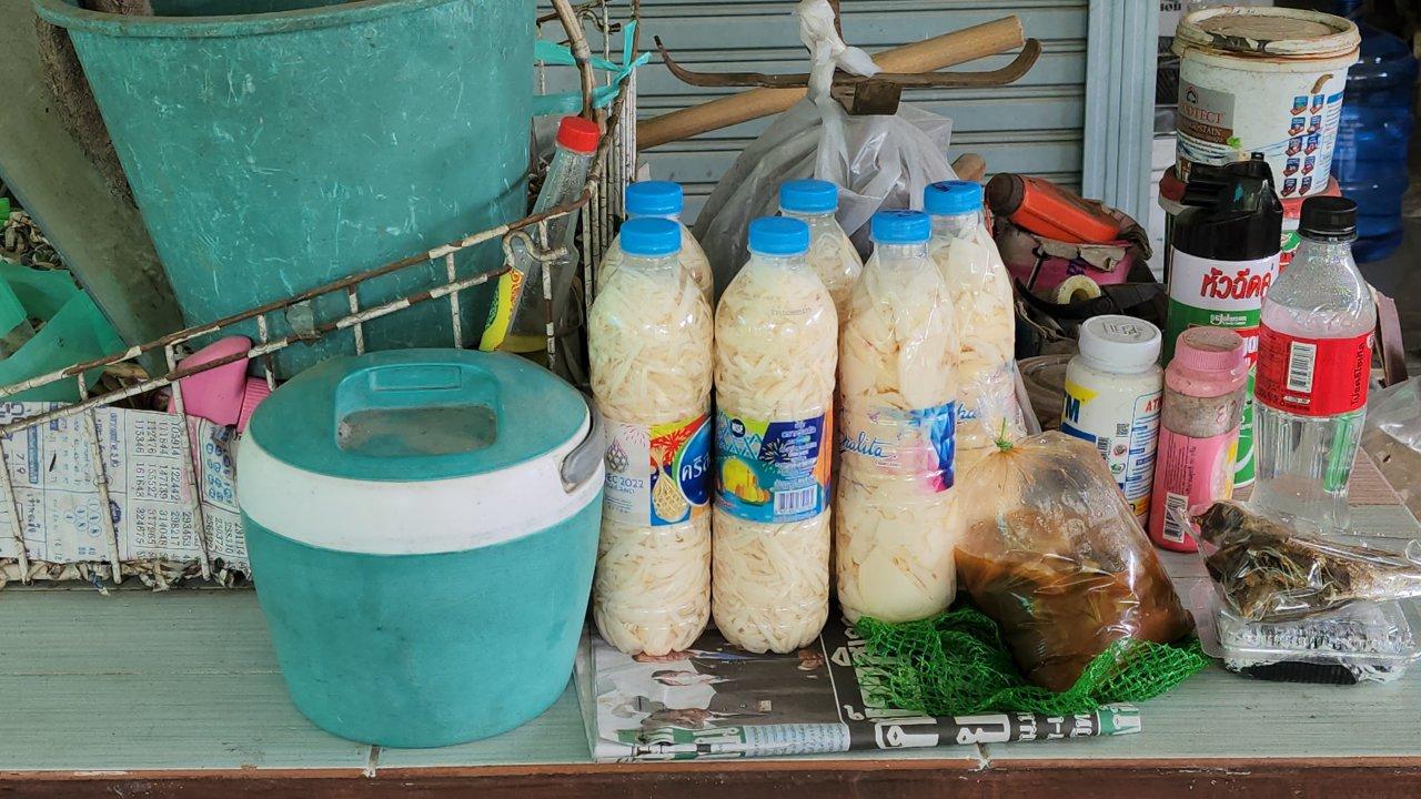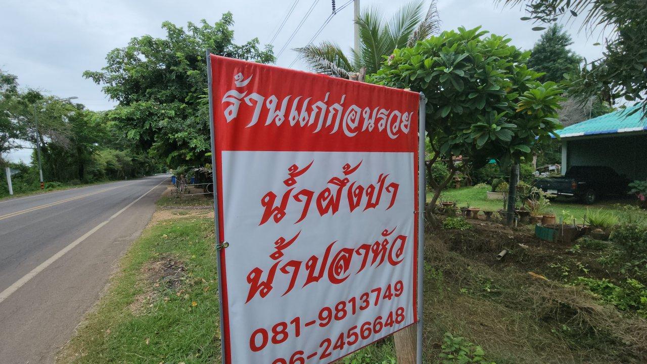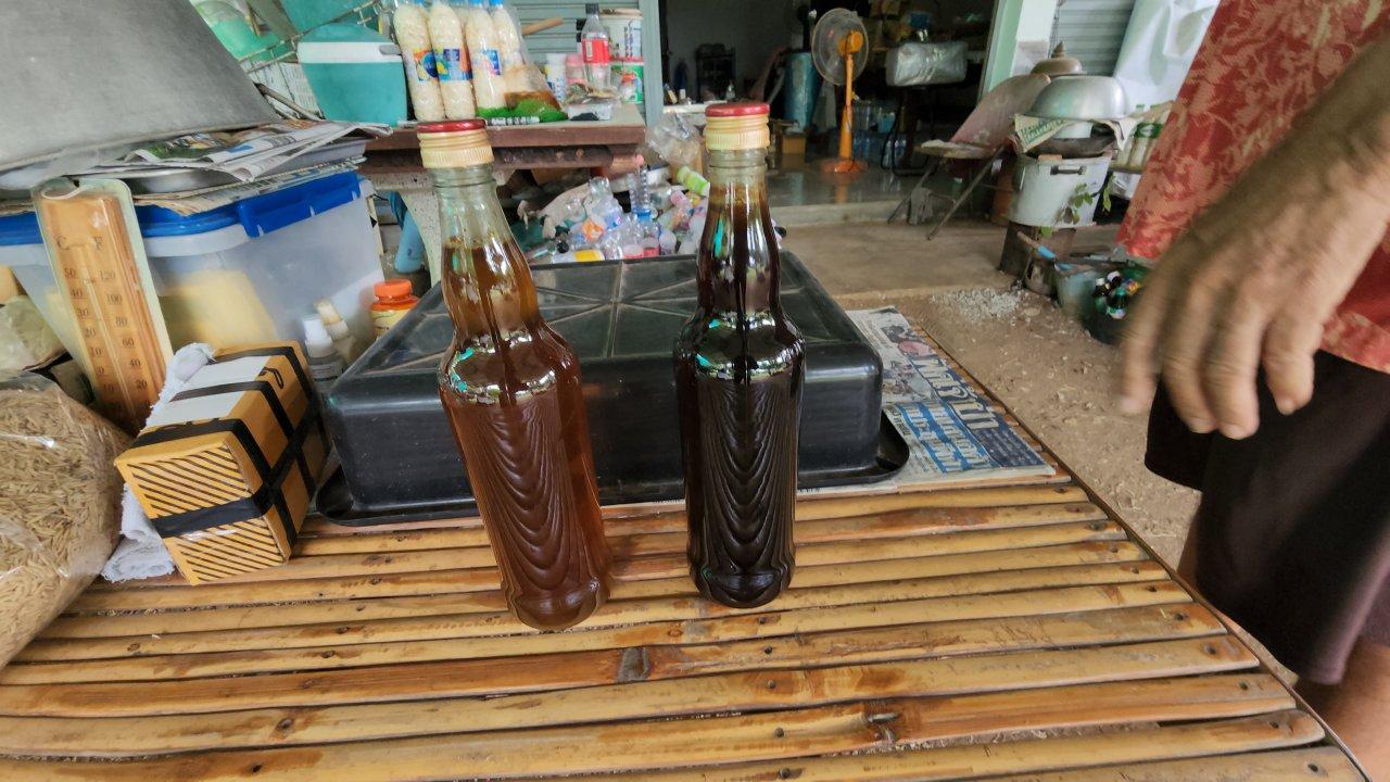 น้ำผึ้งป่าก็มีตลอด เป็นผึ้งหลวงรังใหญ่ๆ คนหาก็ปีนต้นไม้เก่ง เป็นน้ำผึ้งแท้แน่นอนจากผึ้งป่า ไม่ได้มาจากผึ้งเลี้ยง ขายก็เป็นขวด ผึ้งหลวง 250 บาท (ขวดสีอ่อน) ถ้าผึ้งหวี่ 350 บาท (ขวดสีเข้ม) เพราะว่าผึ้งหวี่จะขมเป็นยาดี ความหวานจะน้อยว่าผึ้งหลวง แล้วกว่าจะได้ขวดหนึ่งประมาณ 10 รัง แต่ผึ้งหลวงถ้าเจอรังใหญ่จะได้ 10 ขวด ส่วนหัวน้ำปลา คือ น้ำปลาแท้ ทำจากปลาทะเลแท้ๆ ไม่ได้ผสมอะไรทั้งนั้น ญาติๆ เป็นคนทำก็เอามาแบ่งขาย ลุงขายลุงอารมณ์ดีทุกวัน แวะเวียนมาหาได้ ถ้าอารมณ์ไม่ดีจะแก่เร็ว