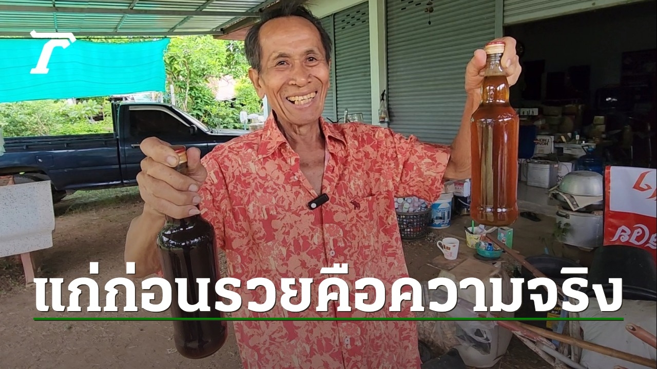 ทำความรู้จักร้านค้าท้องถิ่น ชื่อร้านสะดุดตา แฝงปรัชญาชีวิต "ร้านแก่ก่อนรวย" ริมถนนสาย 3328 ช่วง กม.18-19 บ้านวังลาน ต.หนองหญ้า อ.เมือง จ.กาญจนบุรี คุณลุงเจ้าของขายน้ำผึ้งป่าแท้ๆ หัวน้ำปลา หมักจากปลาทะเลแท้ๆ เพราะรู้อายุมากแล้วคงไม่รวยหรอก