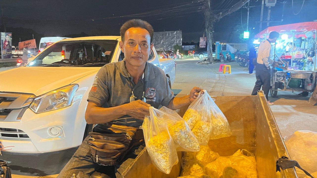 พ่อค้าป๊อปคอร์นที่ อ.ปลวกแดง เปิดมิติใหม่แห่งการขาย ควงถุงป๊อปคอร์นร้องรำเพลงฉ่อยเร่ขายให้ลูกค้า ที่บริเวณตลาดสะพานสี่ ต.มาบยางพร เรียกความสนุกสนานแก่ลูกค้า สร้างความแตกต่างแก่ผู้พบเห็น