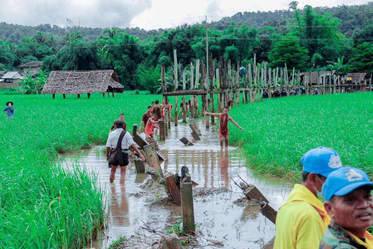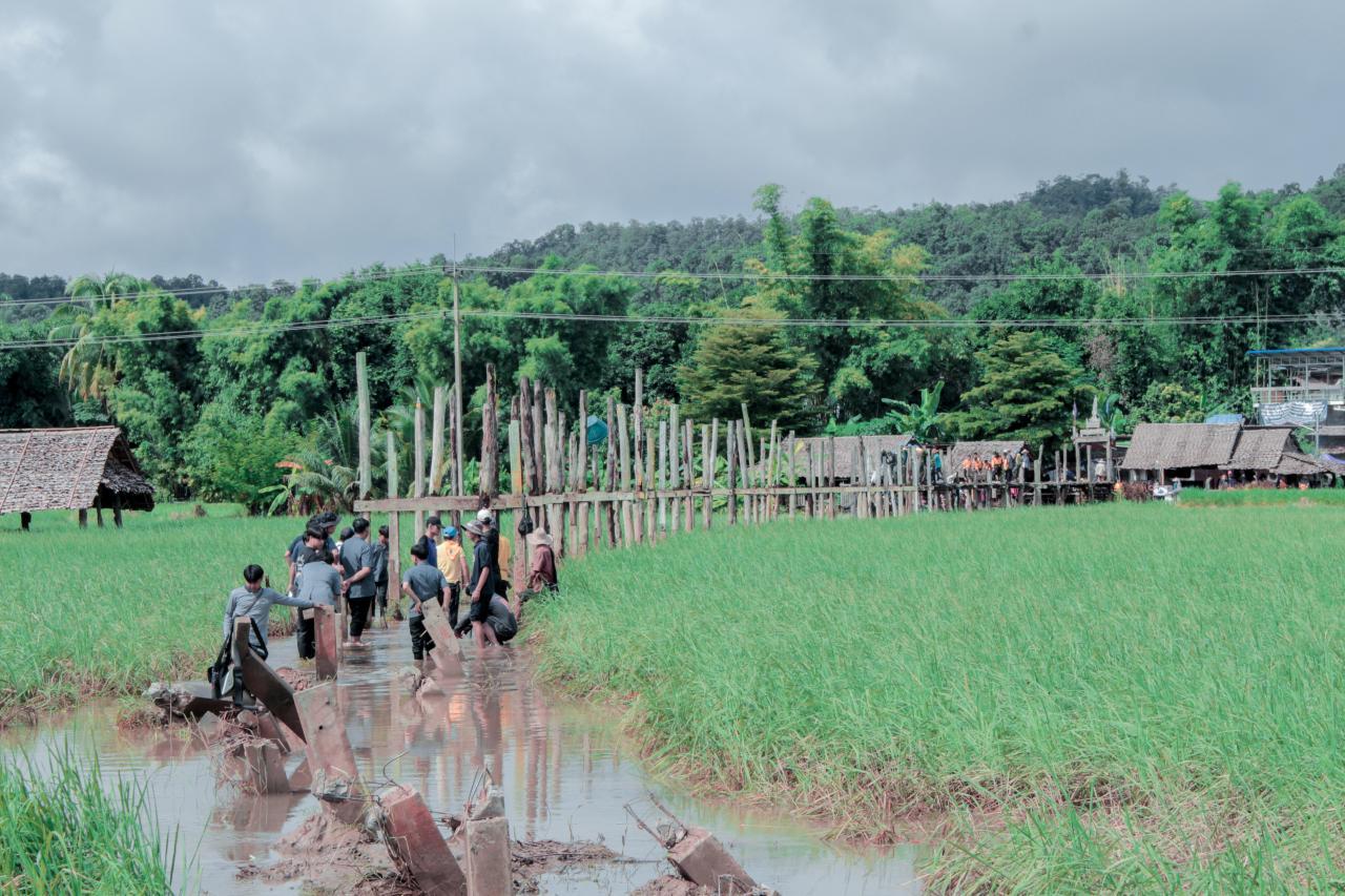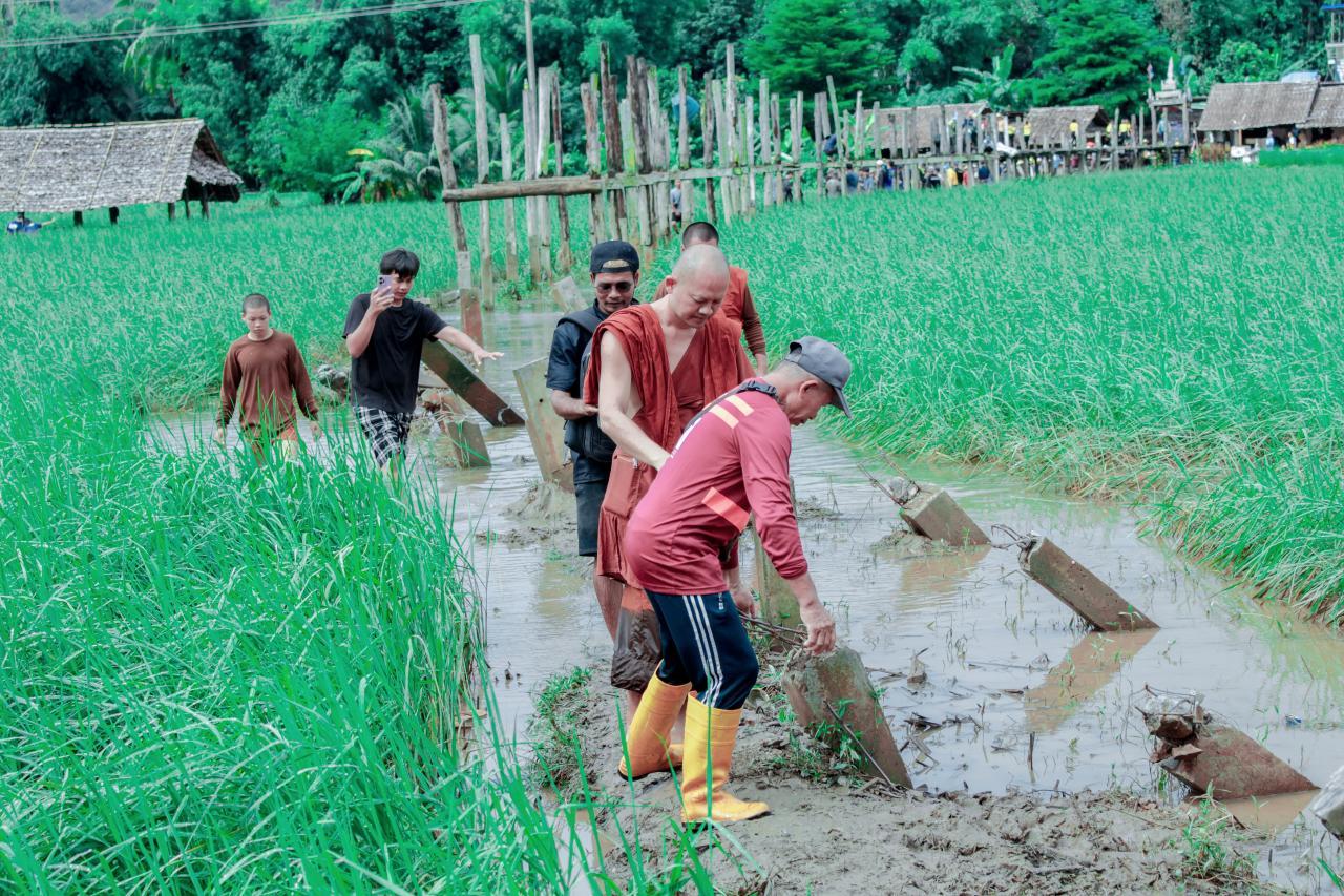เมื่อวันที่ 18 กันยายน 2566 พระปลัดจิตตพัฒน์ อัคคปัญโญ เจ้าอาวาสวัดภูสมณาราม ต.ปางหมู อ.เมือง จ.แม่ฮ่องสอน นำคณะศรัทธา ญาติโยม ชาวบ้านกุงไม้สัก ชาวบ้านชานเมือง บ้านปางหมู พร้อมด้วยเจ้าหน้าที่ทหาร ตชด. อส. คณะครู นักเรียนโรงเรียนศึกษาสงเคราะห์แม่ฮ่องสอน โรงเรียนบ้านกุงไม้สัก นักศึกษาวิทยาลัยแม่ฮ่องสอน ร่วมกันรื้อถอนสะพานซูตองเป้ หรือ สะพานอธิษฐานแห่งความสำเร็จ ซึ่งประสบอุทกภัยน้ำป่าไหลหลาก พัดสะพานจนพังขาดครึ่ง เหตุเกิดเมื่อวันที่ 8 กันยายน ที่ผ่านมา โดยจำเป็นต้องรื้อออก ก่อสร้างใหม่ทั้งหมด เนื่องจากพบว่าช่วงที่สะพานไม่ขาด แต่พบว่าตอม่อถูกแรงน้ำพัดจนเอียงทั้งหมด ซึ่งจะต้องทำฐานปูนตอม่อใหม่ให้มีความแข็งแรง