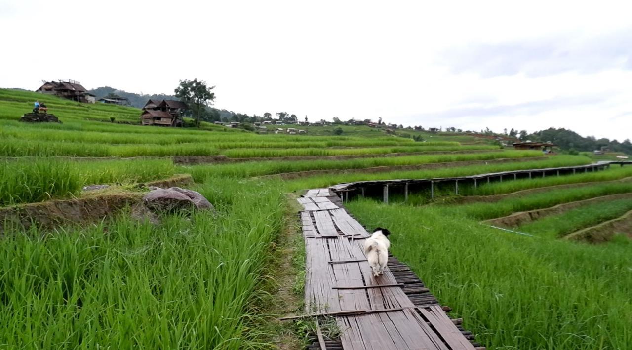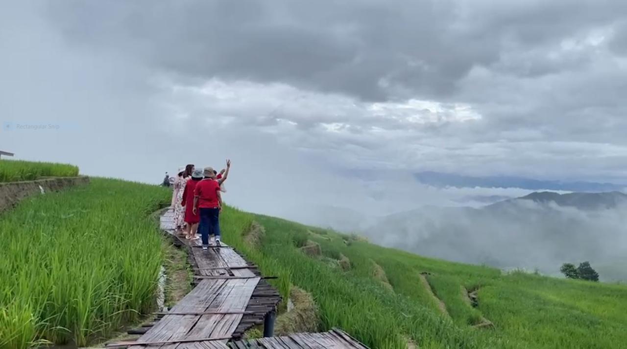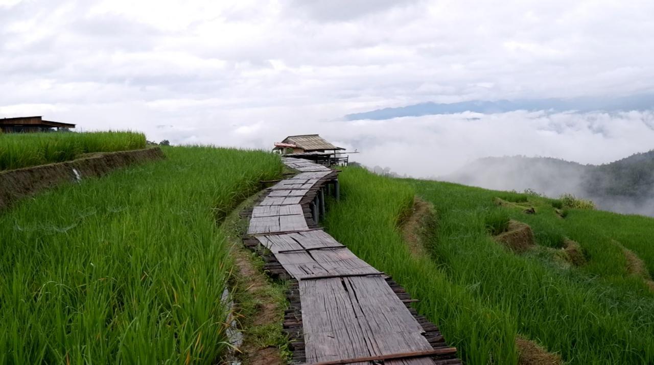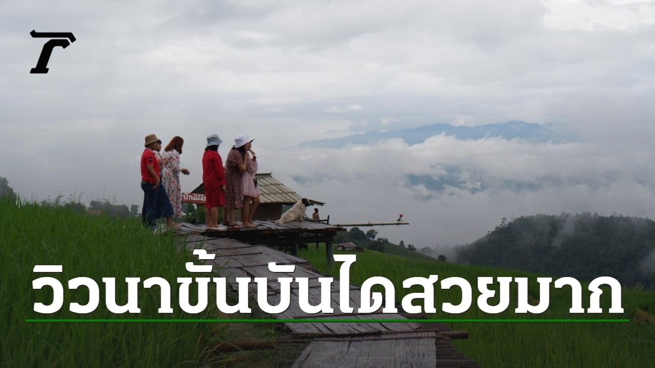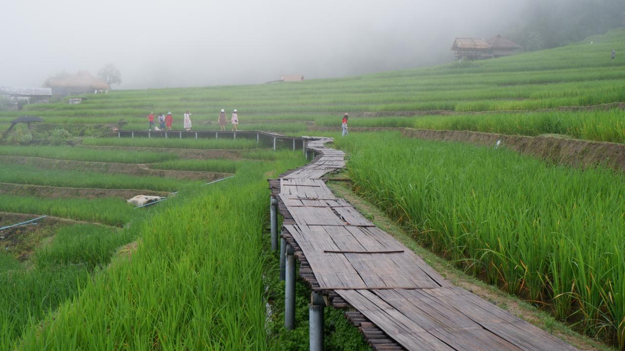 ในทุ่งนามีทางเดินตามคันนาลัดเลาะไปได้ทุกที่ของแปลงนา มีจุดให้ถ่ายภาพ มีสะพานไม้ไผ่ให้เดินชมทุ่งนา มีน้ำไหลจากร่องเหมืองลงสู่แปลงนาเป็นทอดๆ มีหมอก ลอยคลอเคลียภูเขาสูงเป็นระยะๆ มีฝนตกปรอยๆ เป็นบางช่วงสร้างความสุขให้กับคนรักธรรมชาติเป็นอย่างมาก นักท่องเที่ยวบางกลุ่มจะนั่งทานอาหารเช้า ชมความสวยงามที่บ้านพักกลางทุ่งนา