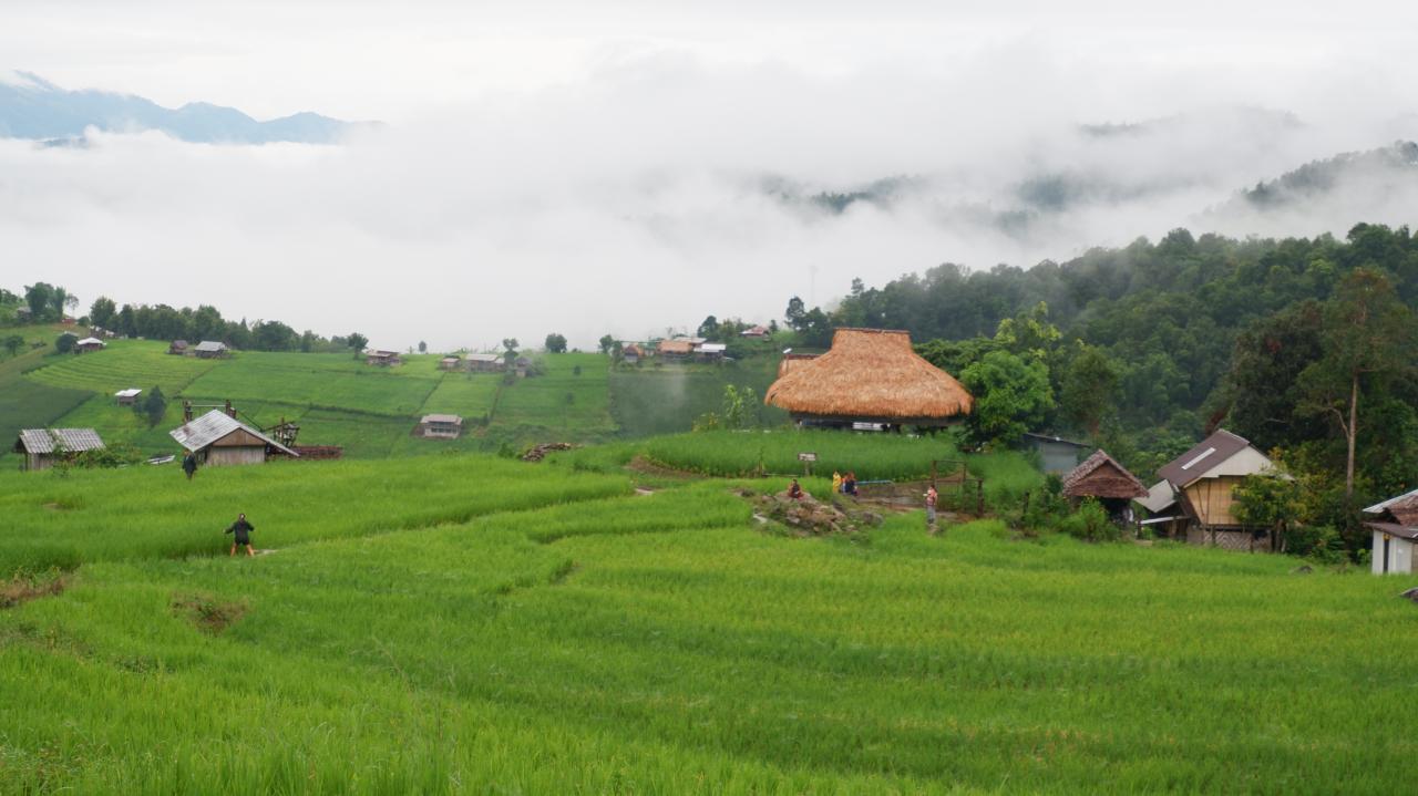 นาขั้นบันไดบ้านป่าบงเปียง อ.แม่แจ่ม ล่าสุด วิวกำลังสวย ต้นข้าวเขียวขจี สีตัดกับเนินเขาและสายหมอกขาว โดยหลายๆ คนมาพักผ่อน และเดินลัดเลาะชมนาข้าวที่ไล่ระดับตามเนินเขา ขณะที่ที่พักโฮมสเตย์ของชาวบ้านเผ่าปกาเกอะญอหลายแห่ง โดนจองเต็มไปถึง พ.ย.66