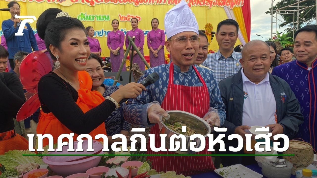 ที่ อ.ปากปลา จ.นครพนม จัดงานเทศกาลกินต่อหัวเสือ หนึ่งเดียวในโลก เปิบสารพัดเมนูเด็ดจากต่อหัวเสือ ทั้งพิซซ่า ซูชิ ก้อย ยำ และแกงอ่อม ให้ประชาชนและนักท่องเที่ยวที่มางานได้ลองชิม ชูกระตุ้นเศรษฐกิจ เพิ่มมูลค่าสินค้า เผยซื้อขายรังต่อราคาหลักหมื่น