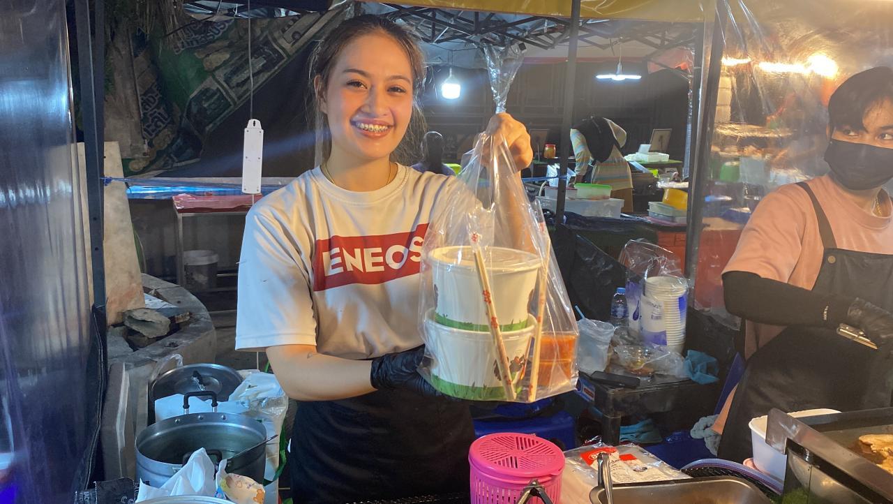 ผู้สื่อข่าวรายงานจาก จ.กระบี่ เมื่อวันที่ 9 ต.ค. 2566 ที่ตลาดปูดำ ริมถนนอุตรกิจ ในเขตเทศบาลเมืองกระบี่ ซึ่งเป็นตลาดจำหน่ายอาหารสตรีทฟู้ดยามค่ำคืนของกระบี่ มีร้านขายอาหารอยู่ร้านหนึ่งที่กำลังได้รับความสนใจ และได้รับความนิยมจากลูกค้า ทั้งชาวบ้านในกระบี่ และ นทท.ที่มาเดินหาของกิน นั่นคือร้าน "หมูทะถ้วย" ของ น.ส.ศิริรัตน์ ผ่องศรี 22 ปี ชาว จ.พัทลุง และ น.ส.จันทร์จิรา มุ่งมี อายุ 22 ปี ชาว จ.กระบี่ ทั้งคู่เป็นคู่รักกัน โดยแต่ละคืนจะมีลูกค้ามาเข้าคิวรอซื้อกันไม่ขาดสาย ทำให้ยอดขายเกินความคาดหมาย