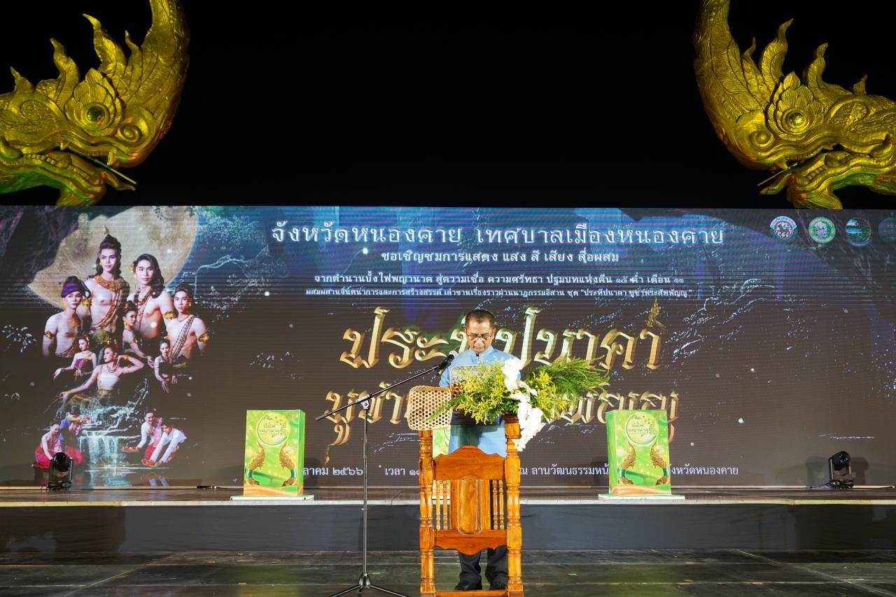 เทศบาลเมืองหนองคาย เปิดการแสดง แสง สี เสียง สื่อผสม “ประทีปนาคา บูชาพระสัพพัญญู” ยิ่งใหญ่อลังการ ถือเป็นการเปิดงานออกพรรษา บั้งไฟพญานาคโลกอย่างเป็นทางการ 26 ต.ค.-1 พ.ย. 66