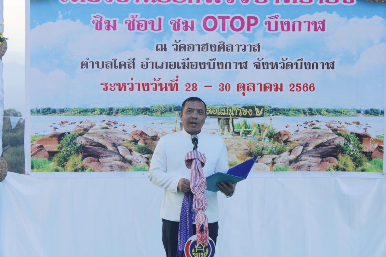 นายอดุลย์ ดีอ้อม พัฒนาการจังหวัดบึงกาฬ กล่าวว่า วัตถุประสงค์เพื่อส่งเสริมช่องทางการตลาด เพิ่มช่องทางการจำหน่ายผลิตภัณฑ์ให้กลุ่มผู้ผลิต ผู้ประกอบการ OTOP จังหวัดบึงกาฬ ตลอดจนเชื่อมโยงการท่องเที่ยวของชุมชน OTOP นวัตวิถี และเพื่อสร้างรายได้แก่ผู้ผลิต ผู้ประกอบการ OTOP จังหวัดบึงกาฬ เพิ่มมากขึ้น ซึ่งบ้านอาฮงเป็นหมู่บ้าน OTOP นวัตวิถี และมีการจัดงานเทศกาลออกพรรษาเป็นประจำทุกปี โดยการจัดงานในครั้งนี้ไม่ได้ใช้จ่ายงบประมาณทางราชการแต่อย่างใด ภายในงาน มีผลิตภัณฑ์ OTOP จังหวัดบึงกาฬ เข้าร่วมจำหน่าย ประกอบด้วย ผลิตภัณฑ์ประเภทอาหาร 1 กลุ่ม ผ้าและเครื่องแต่งกาย 5 กลุ่ม ของใช้ ของตกแต่ง ของที่ระลึก 2 กลุ่ม และสมุนไพร 1 กลุ่ม รวมทั้งสิ้น 9 กลุ่ม และการจัดนิทรรศการชุมชนท่องเที่ยว OTOP นวัตวิถี บ้านอาฮง ระหว่างวันที่ 28 - 30 ตุลาคม 2566 นี้
