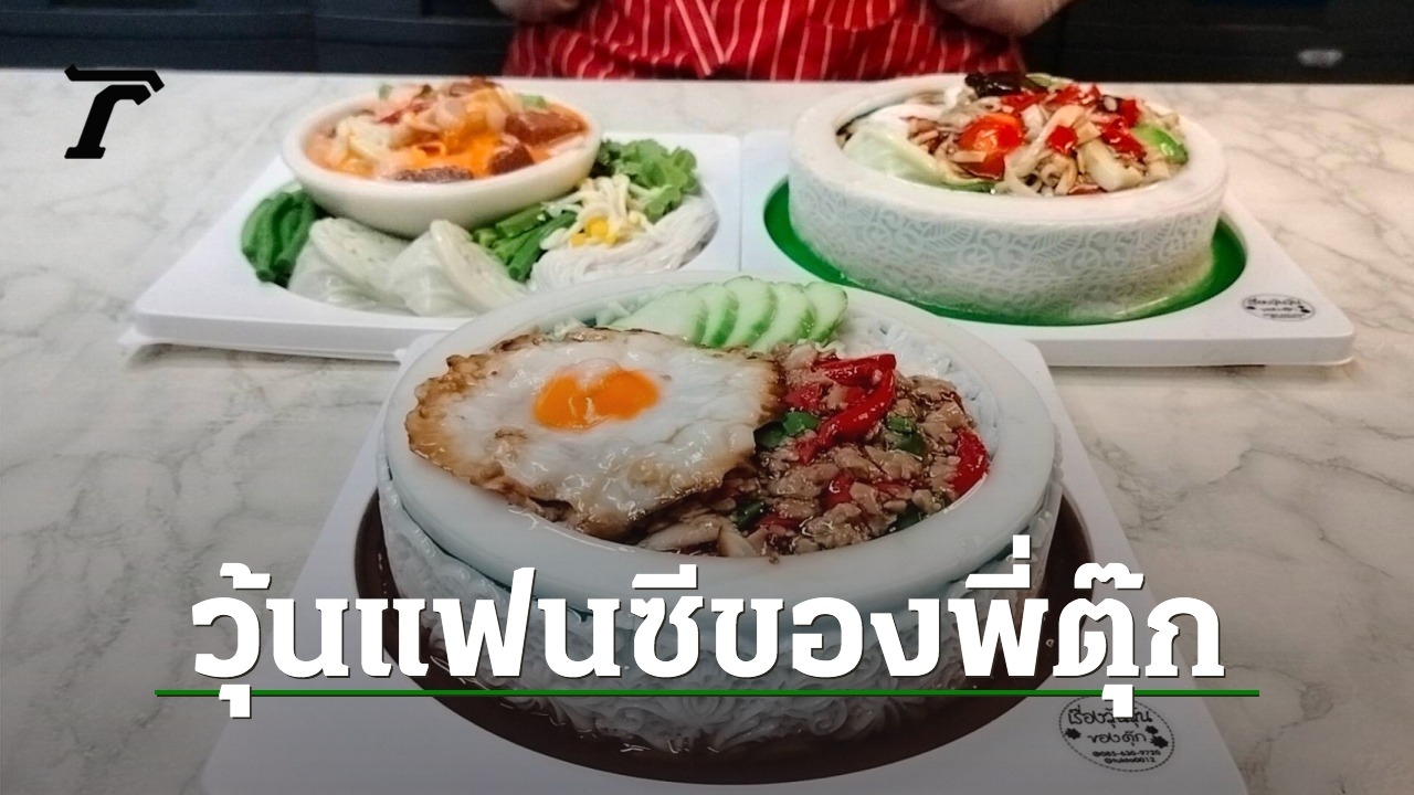 จากวุ้นมะพร้าวธรรมดา ถูกสร้างสรรค์จากไอเดียสุดเก๋เป็นวุ้นแฟนซี หน้าขนมจีนน้ำยาไก่ วุ้นกะเพราไข่ดาว วุ้นส้มตำ ที่แสนสวยงามสมจริง ฝีมือของศิลปินหญิงชาวโคราช เจ้าของเพจ เรื่องวุ้นวุ้นของตุ๊ก