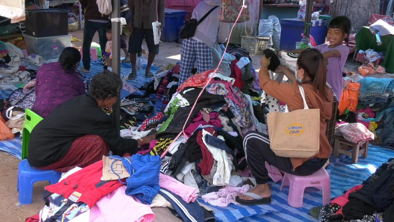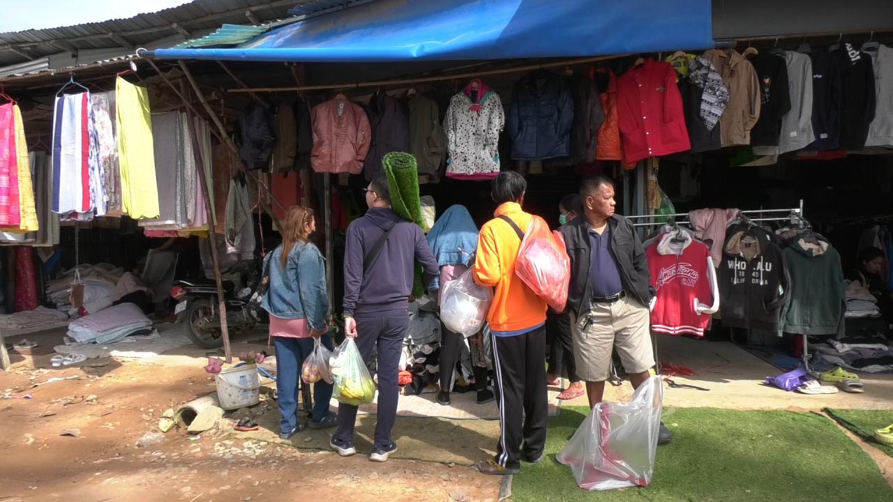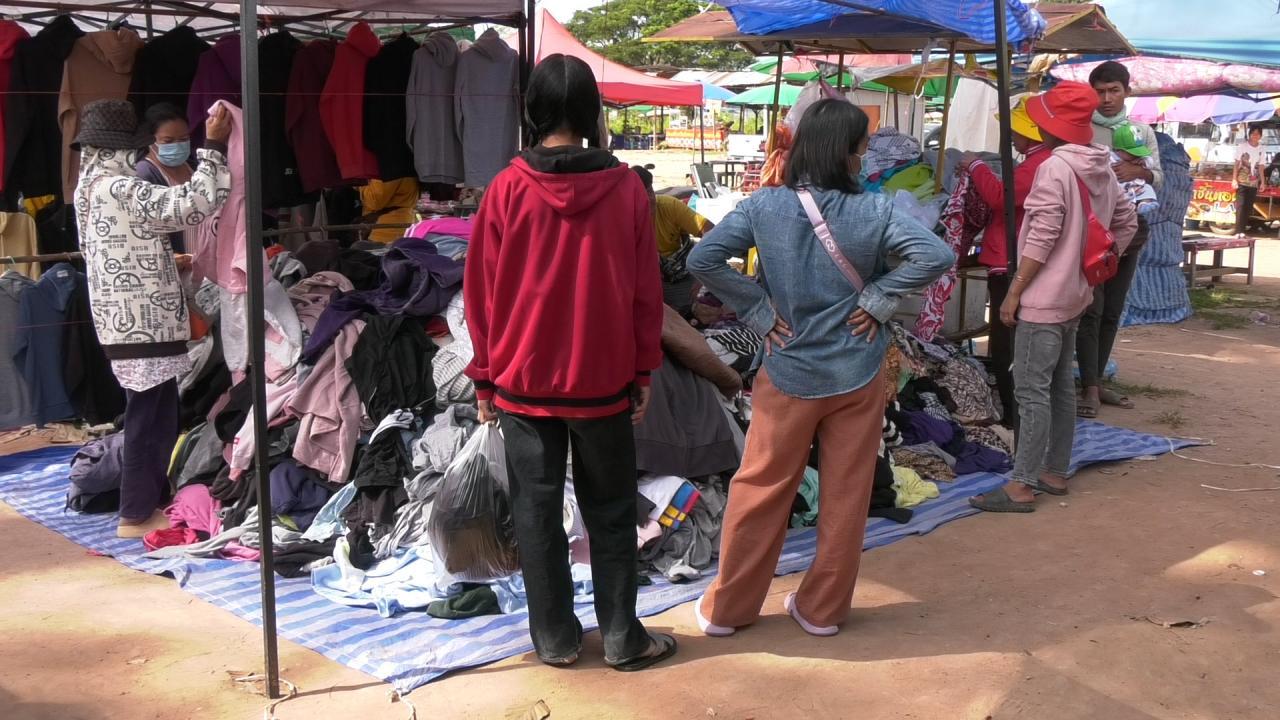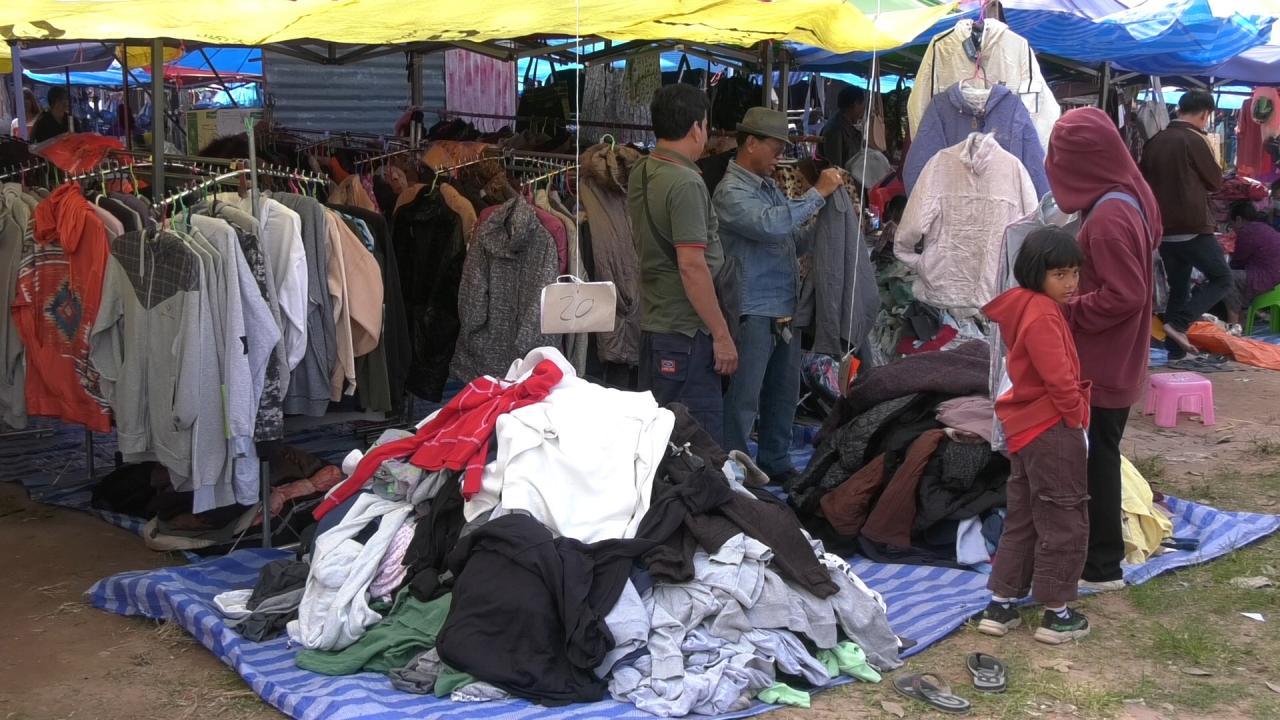 นอกจากนี้ยังมีเสื้อกันหนาวมือสองราคาถูก ถูกวางกองขายให้ลูกค้าเลือกตามใจชอบอีกด้วย ที่เป็นสินค้าได้รับความสนใจจากประชาชน และนักท่องเที่ยวเข้าไปหาเลือกซื้ออย่างคึกคักตลอดทั้งวัน โดยเฉพาะร้านค้าชั่วคราวของชาวกัมพูชาที่ถูกเพลิงไหม้เมื่อปลายเดือนที่แล้ว ซึ่งเปิดร้านชั่วคราวจำหน่ายอยู่ด้านหลังสุดของตลาด ก็มีเสื้อกันหนาวมือสองวางขาย รอให้ลูกค้ามาเลือกซื้อจำนวนมากเช่นกัน