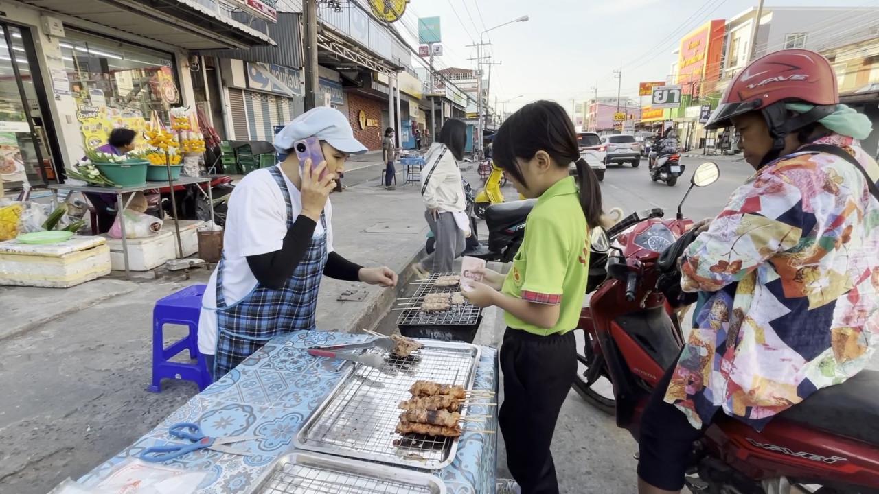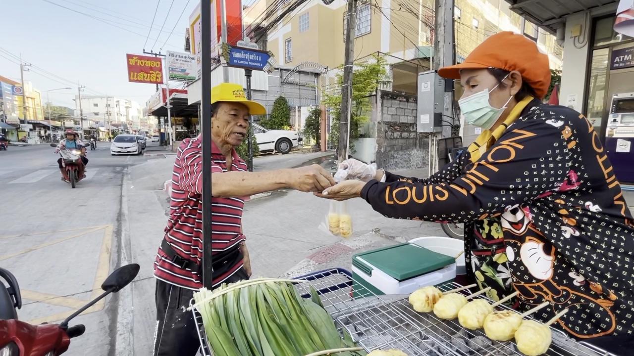 นางขวัญใจ ชัยจำปา อายุ 58 ปี เจ้าของร้านข้าวจี่ป้าขวัญใจ กล่าวว่า ตั้งแต่ช่วงต้นปลายสัปดาห์ที่ผ่านมาจนถึงขณะนี้ สภาพอากาศเริ่มหนาวเย็นลง ทำให้อาหารที่สร้างความอบอุ่นให้กับร่างกายกลับมาขายดีเป็นพิเศษ โดยเฉพาะข้าวจี่ เมนูอาหารอีสานพื้นบ้าน ที่ลูกค้ามาแวะเวียนเลือกซื้อกันอย่าวคึกคักซึ่งร้านทำมาขายวันละกว่า 300-500 ไม้ ขายดีและขายหมดอย่างรวดเร็ว