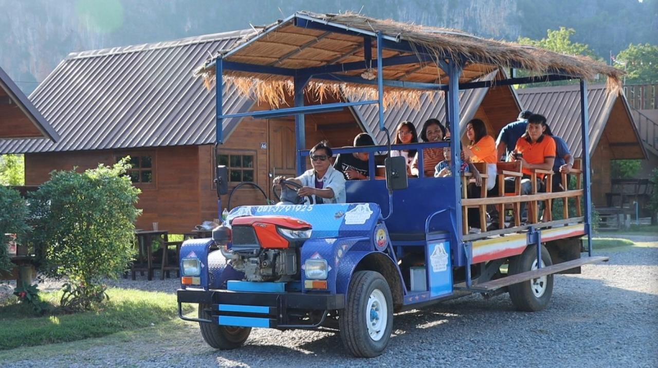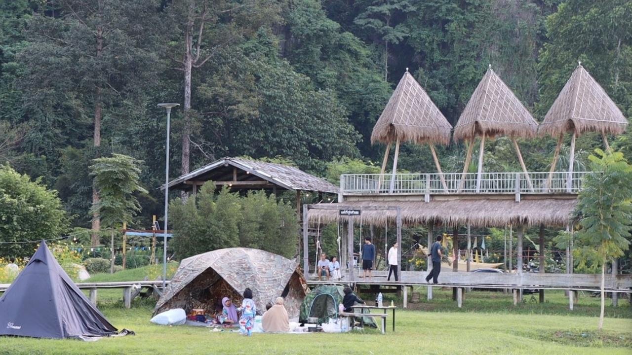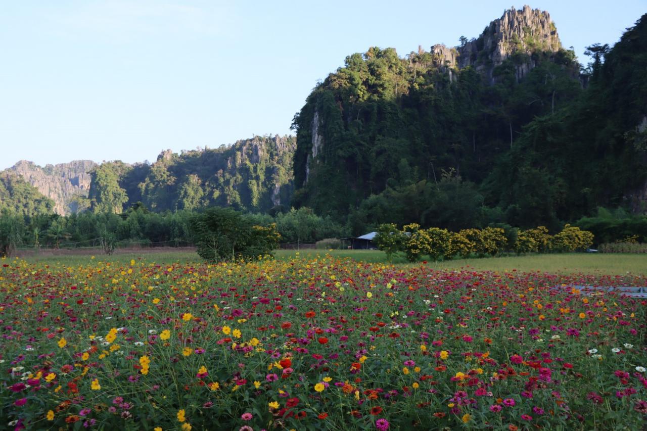 ช่วงนี้ที่ รีสอร์ต นั่งชิลล์ ชมวิว-เขาบ้านมุง ของนายติ้ง งามกุศล ยามเช้ามีทุ่งดอกดาวกระจายสีเหลืองอร่าม ตัดกับกับสีของ ดอกบานชื่น แดง/ชมพู บนพื้นที่ประมาณมาณ 1 งานเศษ โดยมีแบล็กกราวน์ด้านหลังเป็นวิวเขาหินปูนสูงตระหง่านสวยงามท่ามกลางสภาพอากาศเย็นสบาย ลมพัดผ่านตลอดทั้งวัน มีบริการครบครันนอกจากที่พักแล้วยังมีรถนำเที่ยวของชาวบ้านไว้บริการนักท่องเที่ยว ในราคาเที่ยวละ 500 บาท นั่งได้ 10 คน โดยไกด์ชาวบ้านหรือคนขับรถจะ พานักท่องเที่ยวแวะเที่ยวชม แหล่งท่องเที่ยวในชุมชน 10 จุด อาทิ วัดบ้านมุง ถ้ำนางสิบสอง ถ้ำหลวงพ่อบุญมี ถ้ำค้างคาว น้ำตกขุนห้วยเทิน เขาสามยอด เป็นต้น