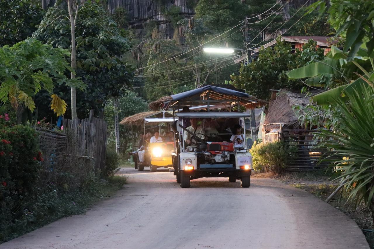 พร้อมทั้งปิดท้ายวันก่อนอาทิตย์ลับฟ้าด้วยภาพ UNSEEN แห่งบ้านมุงนั่นคือ พานักท่องเที่ยวไปตื่นตาตื่นใจกับการออกหาอาหารของฝูงค้างคาว หลายล้านตัว ที่บินออกจากถ้ำบ้านมุง บริเวณวัดบ้านมุง ที่สามารถมองเห็นเป็นทิวทอดบนท้องฟ้ายาวหลายกิโล ตั้งแต่ช่วงเวลาประมาณ 18.00 น. ไปจนถึงประมาณ 19.00 น. หรือ ประมาณ 40-45 นาที โดยสามารถมองเห็นแนวเส้นของฝูงค้างค้าวที่บินเป็นแนวโค้งคล้ายคลื่น โดยที่ฝูงค้างคาวจะอาศัยช่วงเวลาดังกล่าว ออกจากถ้ำ เพื่อไปหาอาหารที่อื่น ก่อนจะกลับเข้ามาที่ถ้ำอีกครั้งในช่วงเช้ามืดก่อนสว่าง ทำให้ในช่วงนี้มีรายได้สะพัดเข้าชุมชนบ้านมุงทั้งเรื่องที่พัก โฮมสเตย์ รีสอร์ต ร้านอาหาร คาเฟ่ หรือรถนำเที่ยวของชาวบ้านในชุมชนทั้ง 11 คัน ยามเย็นรถนำเที่ยวจะมาพร้อมใจกันจอดรอที่ลานดิน เพื่อให้นักท่องเที่ยวได้รอชมฝูงค้างคาว