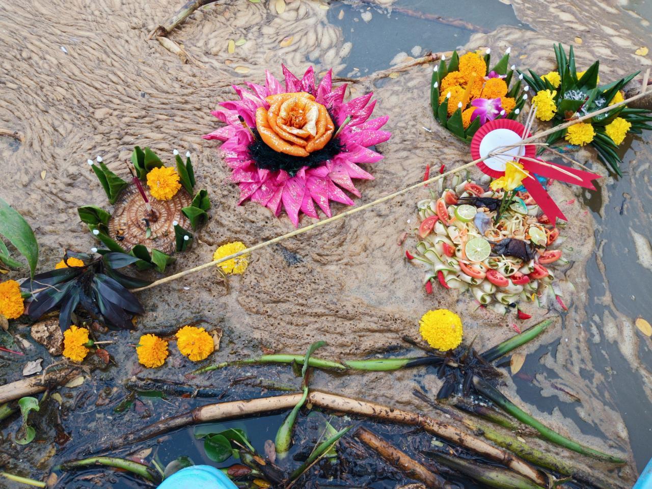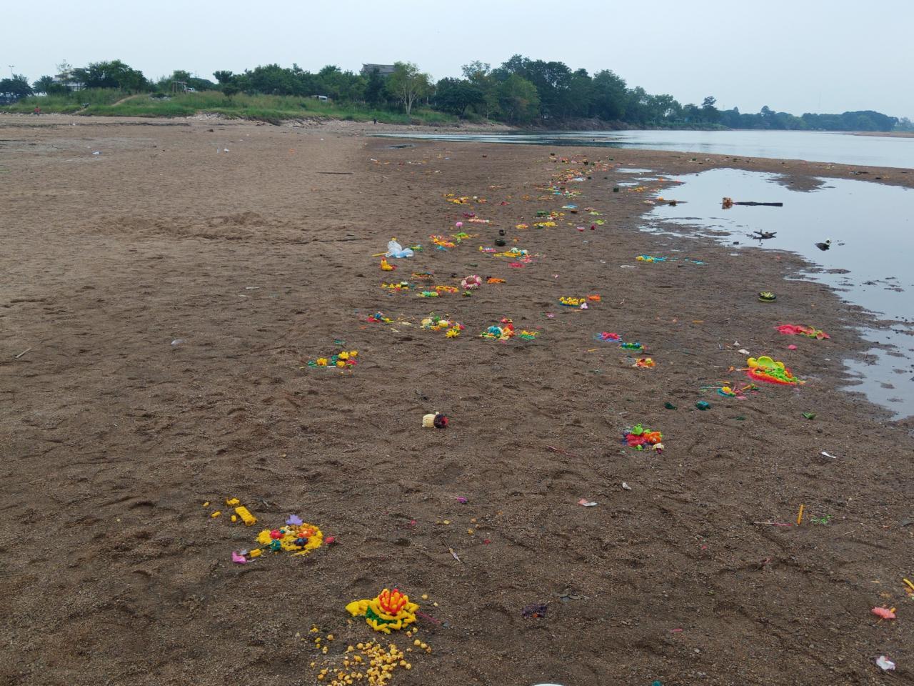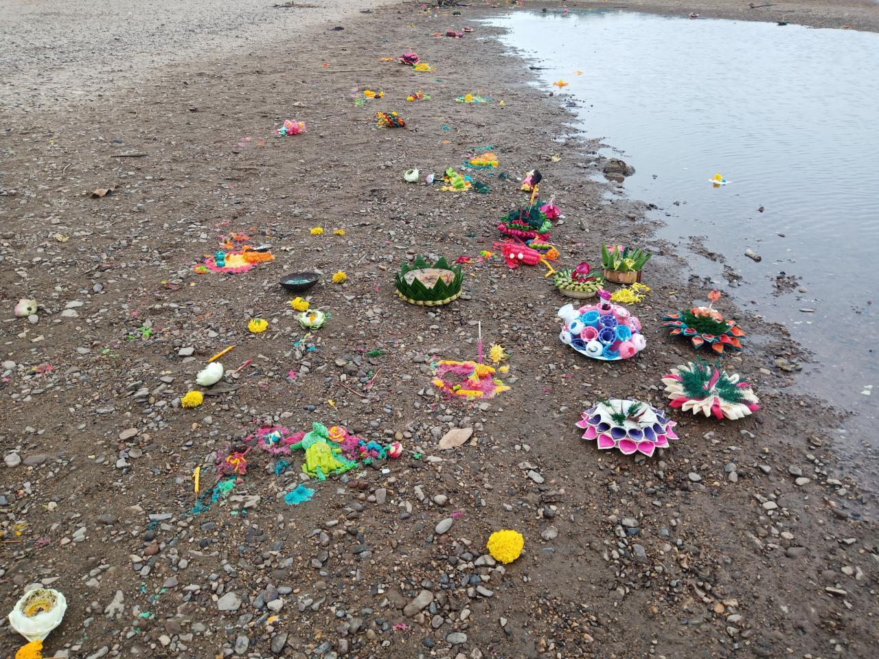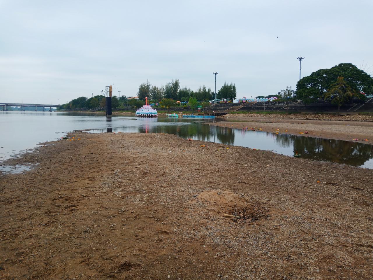 จากการลงไปเดินดูตามหายทราย พบว่ามีกระทงที่ประชาชนมาลอยก่อนล่วงหน้า ลอยไปค้างแห้งอยู่บนหาดทรายทั่วไป มีกระทงหลากหลายรูปแบบ เช่น กระทงที่ทำจากใบตอง จากเปลือกข้าวโพดและจากขนมที่เป็นอาหารปลา เป็นกระทงที่ตกแต่งเป็นรูปตุ๊กตาและรูปสัตว์ต่างๆ พากันมาเกยตื้นจากระดับน้ำที่ลดลงต่อเนื่อง ซึ่งถ้าถึงวันนี้ซึ่งตรงกับวันลอยกระทง ประชาชนจะมาลอยกันจำนวนมาก ปริมาณกระทงที่จะมาค้างแห้งบนหาดทรายก็คงจะมากกว่านี้ แต่สิ่งหนึ่งที่เห็นได้คือกระทงที่ทำจากขนมอาหารปลา จะย่อยสลายง่ายกว่ากระทงชนิดอื่นๆ ถ้าเปียกน้ำก็จะยุ่ยหายไป ส่วนกระทงชนิดอื่นๆ ก็คงต้องกลายเป็นขยะให้เจ้าหน้าที่มาเก็บไปทิ้ง