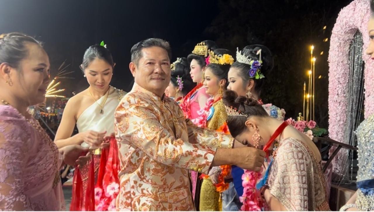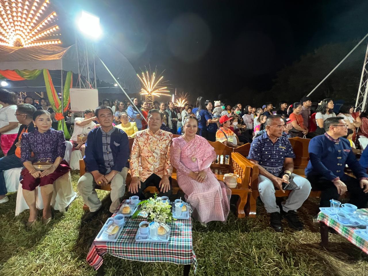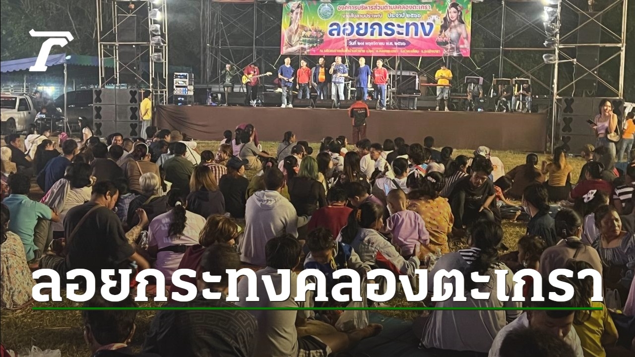 เมื่อเวลา 21.00 น. วันจันทร์ที่ 27 พ.ย. 2566 ผู้สื่อข่าวรายงานว่า ที่งานสืบสานประเพณีลอยกระทงประจำปี 2566 ณ ริมอ่างเก็บน้ำบ้านหัวฝาย ต.คลองตะเกรา อ.ท่าตะเกียบ จ.ฉะเชิงเทรา จัดโดยองค์การบริหารส่วนตำบลคลองตะเกรา บรรยากาศคึกคัก มีเกษตรกรชาวนาและชาวสวนยางพาราในพื้นที่กว่า 3,000 คน มาร่วมงานแบบล้นเนืองแน่น จะเห็นว่าทุกเวที ทั้งเวทีประกวดนางนพมาศ ตัวแทนของแต่ละหมู่บ้าน ต่างมีกองเชียร์ที่ร่วมลุ้น ด้านเวทีหมอลำซิ่งก็มีการเปิดการแสดงที่ดูจะถูกใจชาวบ้านมากๆ