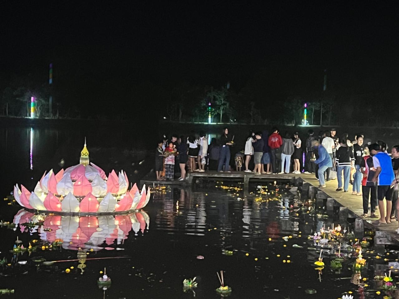 ชาวนาชาวสวนยางเกษตรกรทั้งอำเภอท่าตะเกียบ โล่งใจหลังช้างป่าออกไปจากพื้นที่ พากันเที่ยวงานลอยกระทงล้นทะลักกว่า 3,000 คน ณ ริมอ่างน้ำบ้านหัวฝาย ต.คลองตะเกรา ดูการประกวดนางนพมาศ หมอลำซิ่ง และชมการประกวดกระทงธรรมชาติ