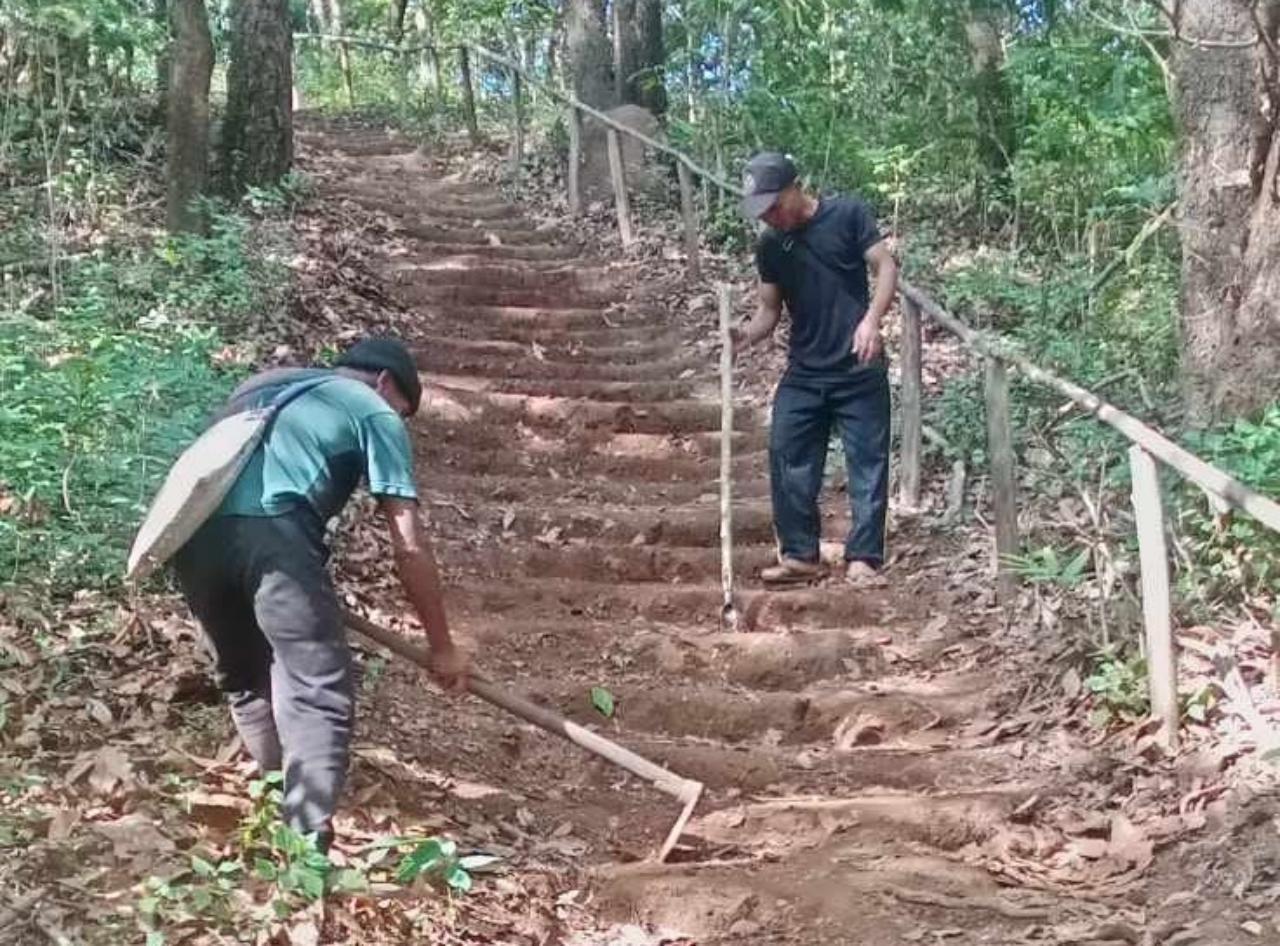 ชาวบ้านอุมดาเหนือ เร่งซ่อมบันไดดินทางเดินขึ้นดอยพุ่ยโค เตรียมรับนักท่องเที่ยวขึ้นมากางเต็นท์ สัมผัสลมหนาวชมทะเลหมอก หลังมีก๊วนรถ จยย.วิบากขี่บนทางเท้าขึ้นยอดดอยจนพังเสียหาย ย้ำห้ามนำยานพาหนะส่วนตัวขึ้นมา