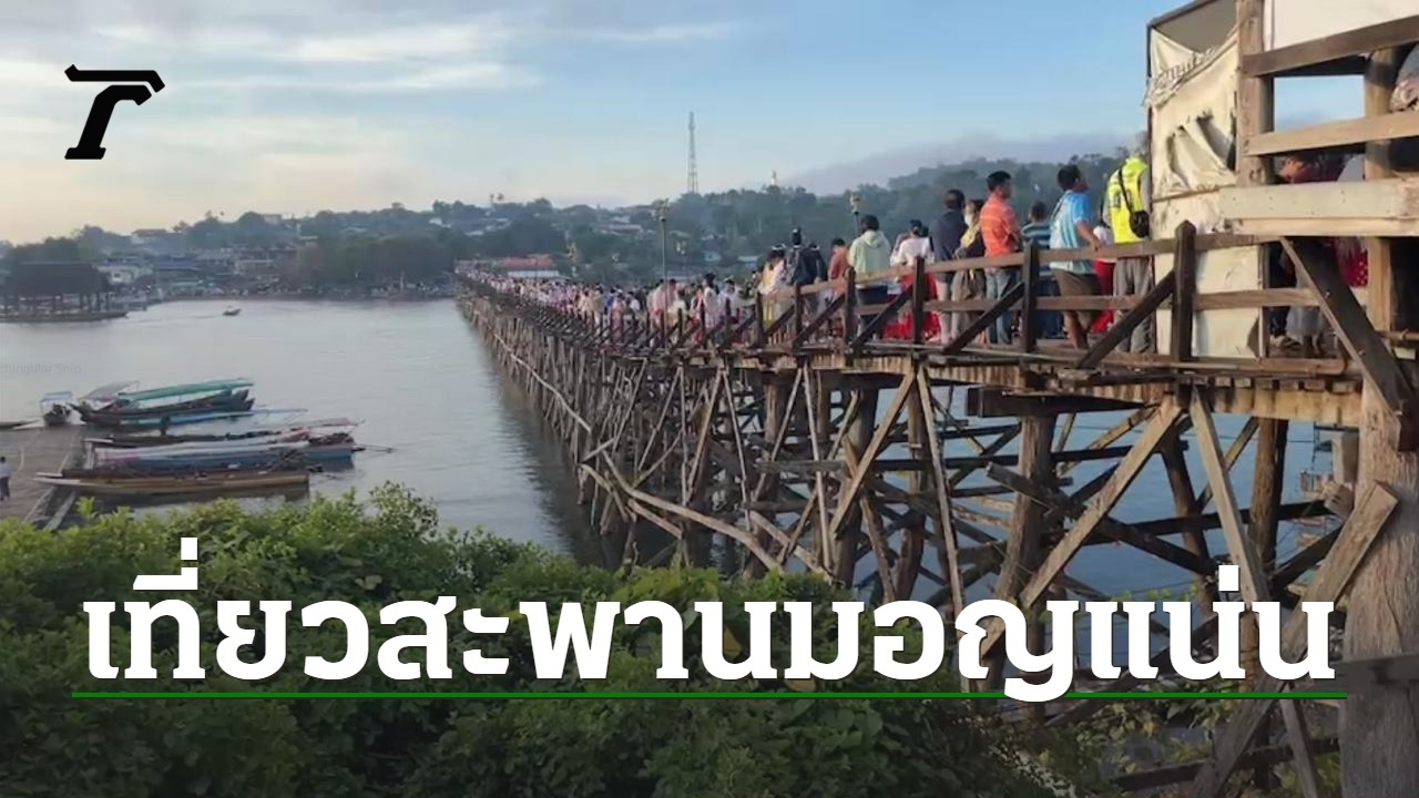 นักท่องเที่ยวจากทั่วสารทิศเดินทางมาท่องเที่ยวยังสะพานไม้อุตตมานุสรณ์ หรือสะพานมอญ สถานที่ท่องเที่ยวขึ้นชื่อของ จ.กาญจนบุรี ในช่วงวันหยุดยาวปีใหม่ 2567 ทำให้ผู้คนเนืองแน่นแต่เช้า คาดจะมีเงินสะพัดในท้องถิ่นกว่า 30 ล้านบาท