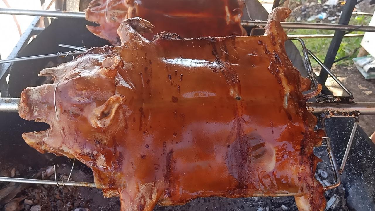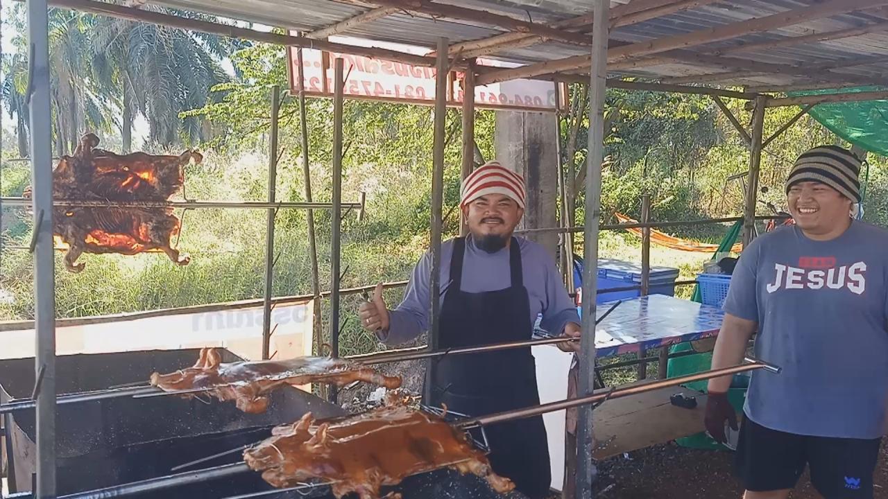 ร้านหมูหันวรรณิภา เจ้าเก่า ริม ถ.มิตรภาพ ช่วงอุดรธานี-หนองคาย เตรียมหมูคัด 400 ตัว ย่างขายให้ลูกค้าเดินทางกลับบ้านฉลองปีใหม่ ตั้งเตาและเครื่องหันหมูไว้รองรับลูกค้า ย่างหมูหอมไปทั้งถนน สนนราคาตั้งแต่ 1,500-3,000 บาท ตามขนาดหมู