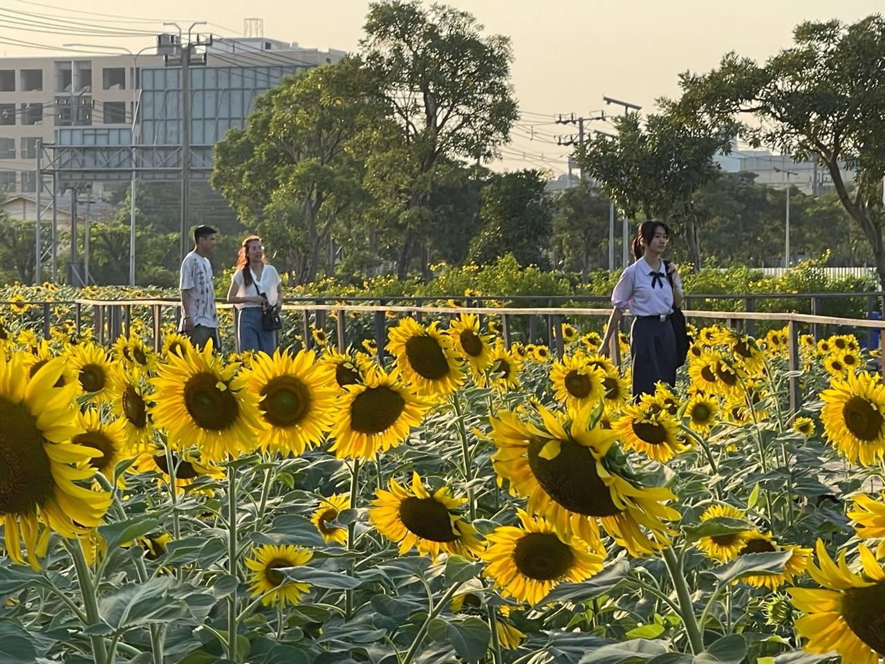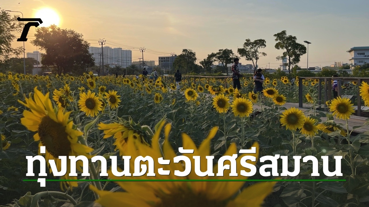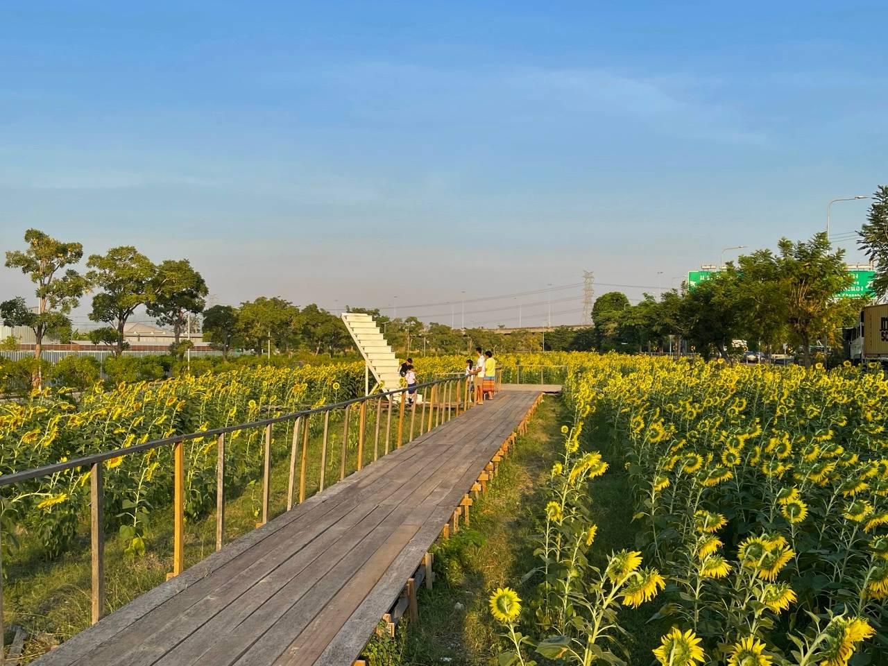 เทศบาลนครปากเกร็ด จ.นนทบุรี ปรับปรุงพื้นที่กว่า 9,000 ตร.ม.ใกล้ทางด่วนศรีสมาน ถนนศรีสมาน เป็นทุ่งดอกทานตะวันเหลืองอร่ามเบ่งบานสะพรั่ง รอต้อนรับนักท่องเที่ยวแวะมาเช็กอิน นับเป็นทุ่งทานตะวันใกล้กรุงเทพฯแห่งใหม่ ที่เดินทางมาง่ายทั้งเช้าและเย็น