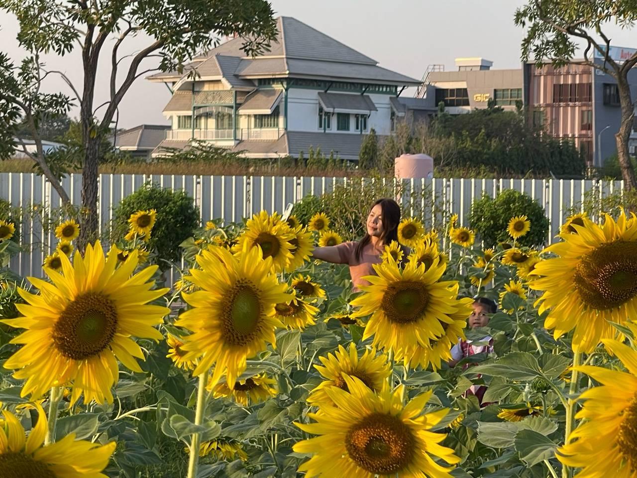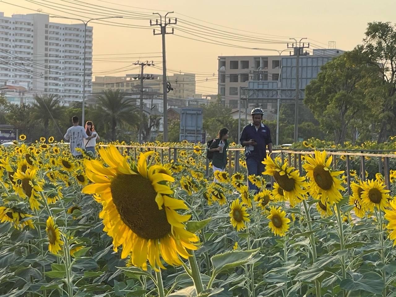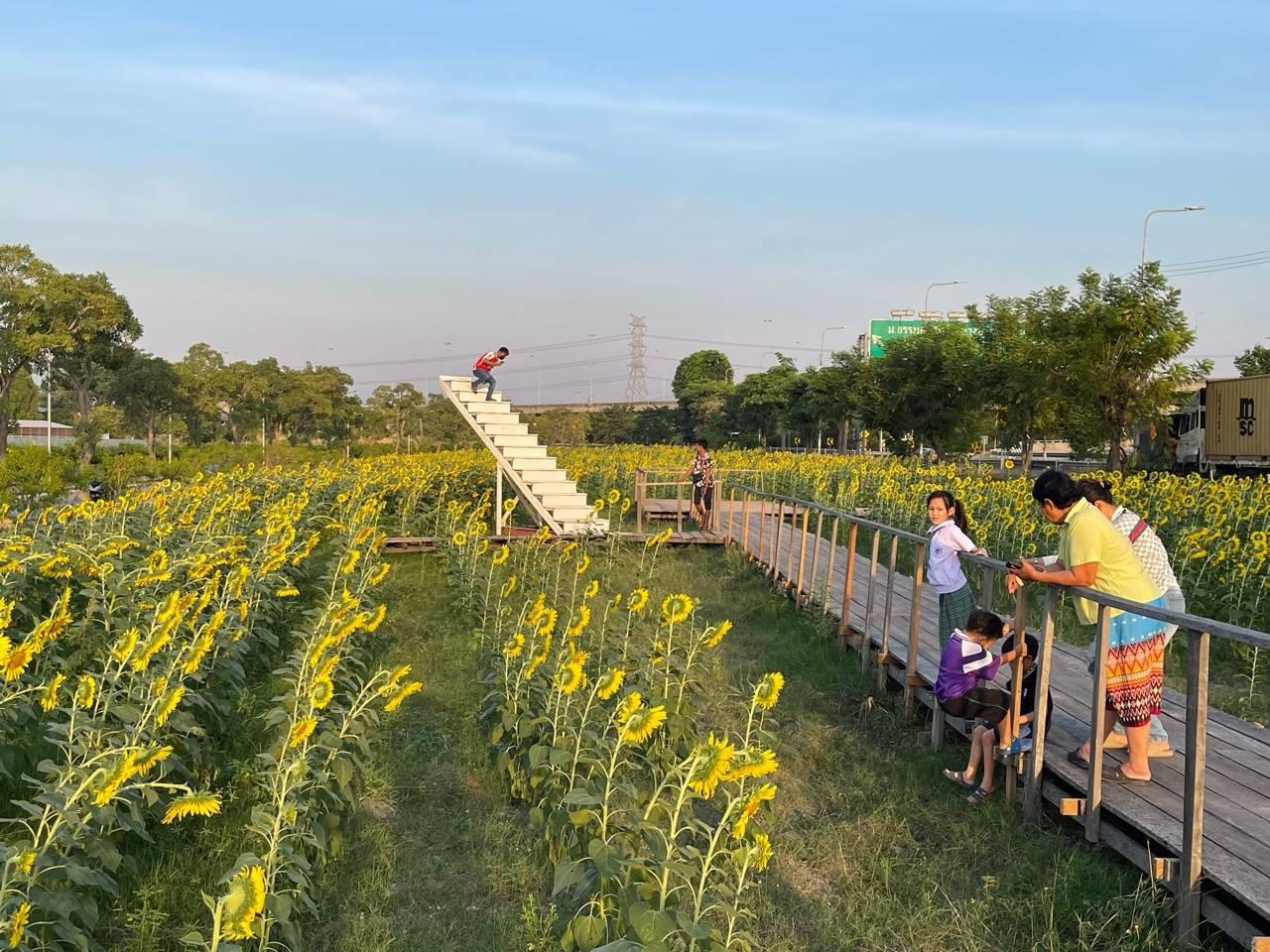 เทศบาลนครปากเกร็ด จ.นนทบุรี ปรับปรุงพื้นที่กว่า 9,000 ตร.ม.ใกล้ทางด่วนศรีสมาน ถนนศรีสมาน เป็นทุ่งดอกทานตะวันเหลืองอร่ามเบ่งบานสะพรั่ง รอต้อนรับนักท่องเที่ยวแวะมาเช็กอิน นับเป็นทุ่งทานตะวันใกล้กรุงเทพฯแห่งใหม่ ที่เดินทางมาง่ายทั้งเช้าและเย็น
