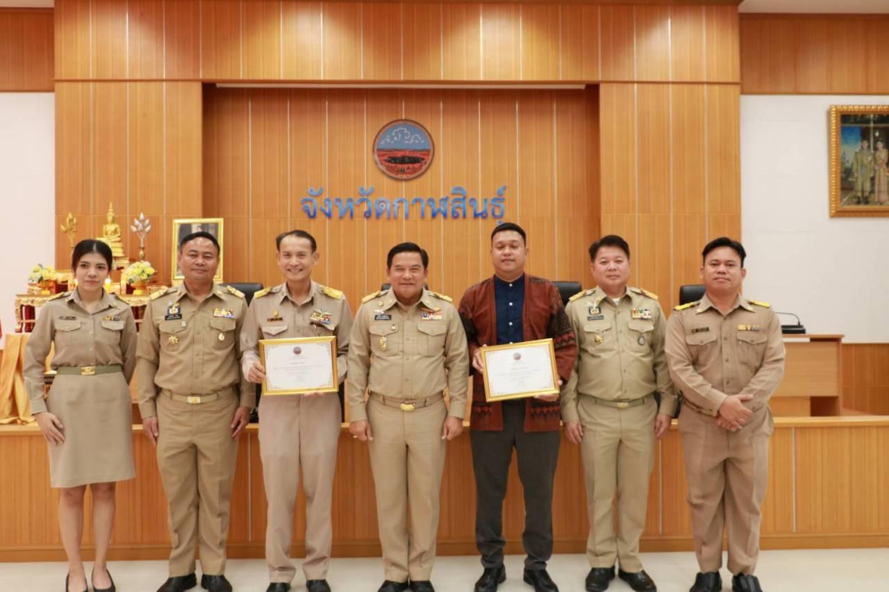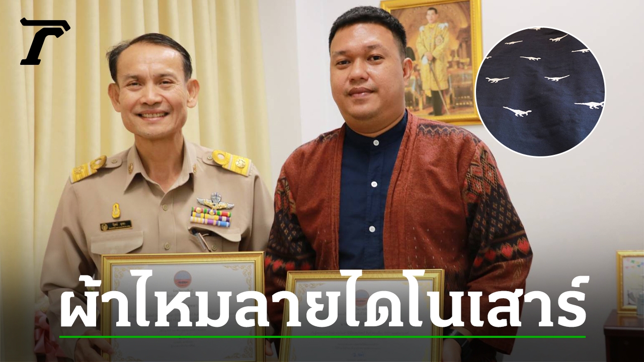 จังหวัดกาฬสินธุ์ มอบเกียรติบัตรให้ผู้ออกแบบและวิจัยพัฒนา ผ้าไหมแพรวาลายไดโนเสาร์ "มินิโมเคอร์เซอร์" พร้อมส่งเสริมเป็นสินค้าท่องเที่ยว TPOT ซอฟต์พาวเวอร์ Kalasin Geopark ครั้งแรกของไทย หนึ่งเดียวของโลก