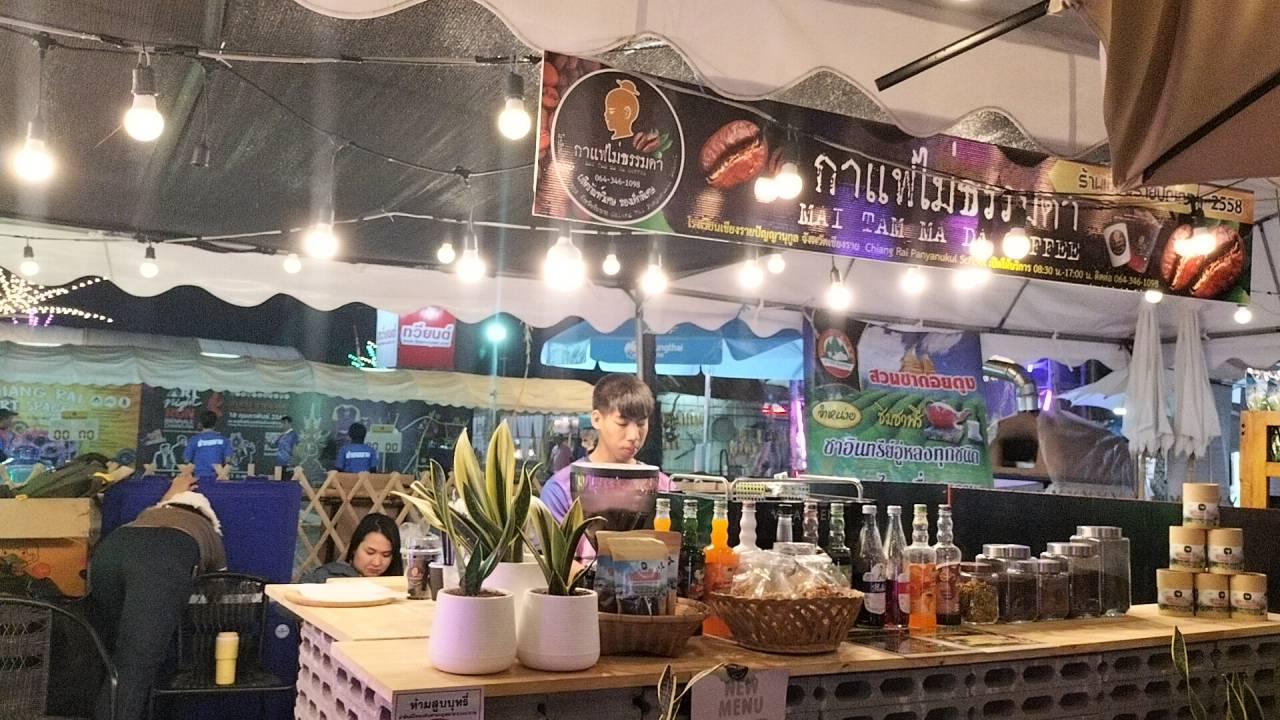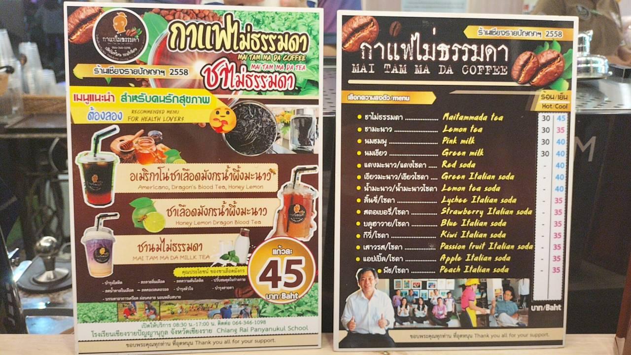 น้องๆ เด็กพิเศษ จากโรงเรียนเชียงรายปัญญานุกูล มาออกบูธ "กาแฟไม่ธรรมดา" จำหน่ายภายในงานพ่อขุนเม็งรายฯ ปี 2567 โดยนำกาแฟเมนูพิเศษ "อเมริกาโน่ชาเลือดมังกรน้ำผึ้งมะนาว" ที่เป็นซิกเนเจอร์ของทางร้าน จากการนำชาเลือดมังกรที่ปลูกเองผสมกับกาแฟ
