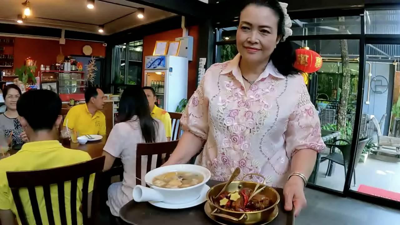 นางวารุณี สงวนนาม หรือ เจ๊น้อง เจ้าของร้าน ได้แนะนำเมนูอาหารพื้นถิ่นของชาวจังหวัดพังงา “ขาหมูฮ้องส้ม” ที่ทางร้านได้นำมาเป็นหนึ่งในเมนูซิกเนเจอร์ของทางร้าน ที่มีการปรุงอย่างพิถีพิถัน และต้องใช้เวลา เมื่อได้ทานกับข้าวสวยร้อนๆ รสสัมผัสของขาหมูนุ่มเหมือนละลายในปาก รสชาติเปรี้ยวหวานมันเค็มครบ กลมกล่อมด้วยกลิ่นสมุนไพร บอกได้คำเดียวว่าหรอยอย่างแรง เรียกว่าในความมันของขาหมูยังอุดมด้วยคุณประโยชน์จากสมุนไพรไทยอีกหลายชนิด
