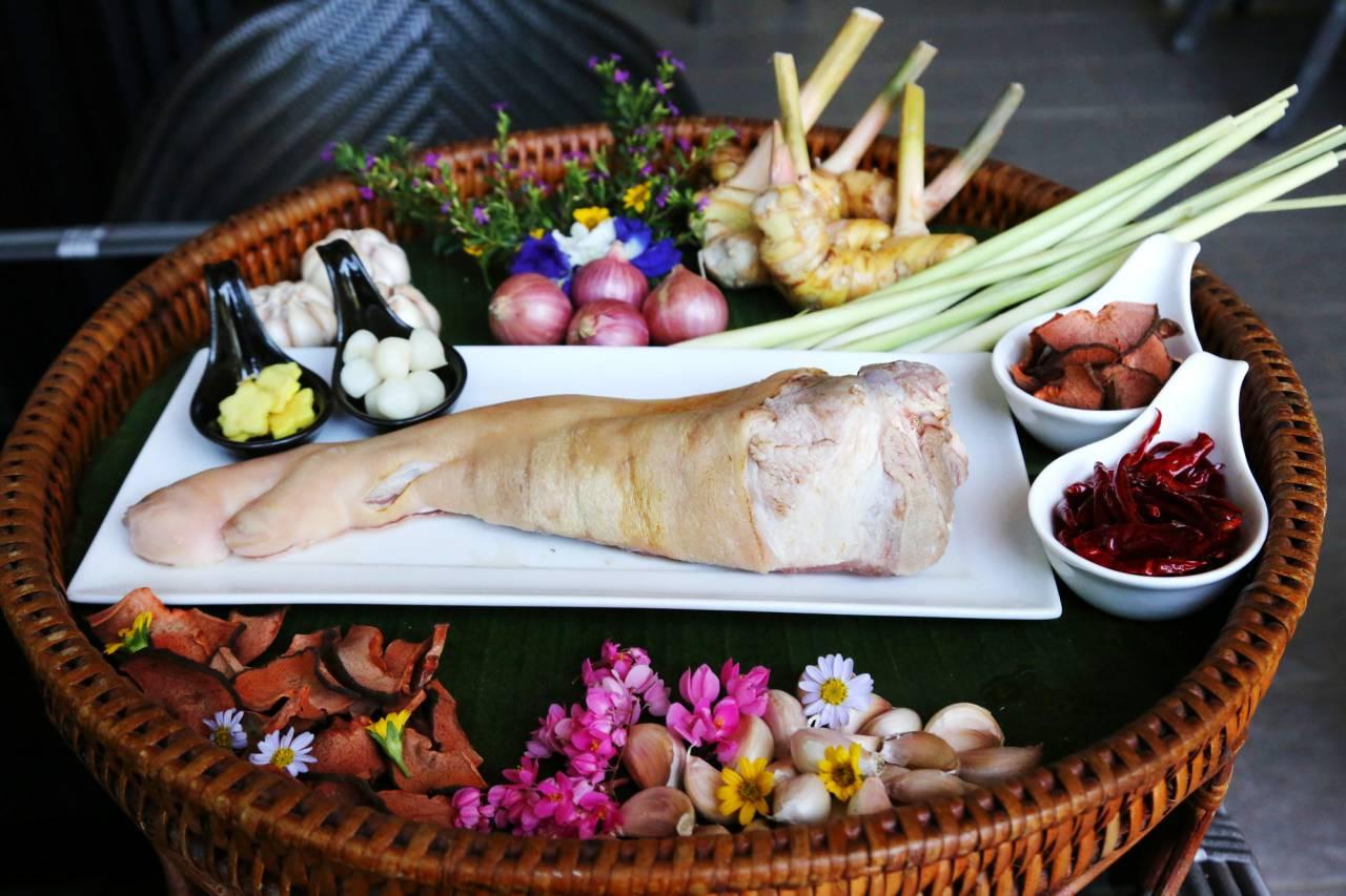 เจ๊น้อง เจ้าของร้าน กล่าวว่า ขาหมูฮ้องส้ม เป็นเมนูอาหารพื้นถิ่นของจังหวัดพังงา มีวิธีการปรุงเริ่มจากใส่น้ำตาลปี๊บกับซีอิ๊วดำลงไปผัดในกระทะผัดจนเคี่ยวเหนียวดี แล้วใส่ขาหมูที่สับเตรียมไว้ลงไปผัดต่อจนน้ำที่เราเคี่ยวไว้เคลือบขาหมู จากนั้นใส่ตะไคร้ หอมแดง ข่า ส้มควาย กระเทียมดอง ลงไปผัดจนน้ำหมูออกมา แล้วหรี่ไฟอ่อนๆ ผัดต่อไปเติมน้ำซุปเคี่ยวต่อไป ชิมดูรสชาติเติมพริกแห้ง เคี่ยวต่อจนขาหมูนุ่มและแวววาวได้ที่ ก็ยกลงจากเตาพร้อมเสิร์ฟได้เลย ซึ่งต้องใช้เวลารวมประมาณ 2 ชั่วโมง ทำให้ลูกค้าที่จะทานเมนูนี้ต้องโทรมาสั่งล่วงหน้า