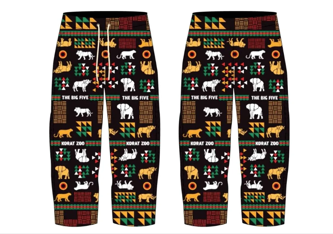 สวนสัตว์โคราช เปิดให้จองแล้ว กางเกง Big Five 5 สัตว์ผู้ยิ่งใหญ่แห่งทุ่งหญ้าแอฟริกา สิงโต, เสือดำ-เสือดาว, ช้างแอฟริกา, แรดขาว และควายป่าแอฟริกา หวังเอาใจคนรักสัตว์ป่า โดยกางเกงเป็นสไตล์เร็กเก เนื้อผ้ากางเกงตัดเย็บจากผ้าไหมอิตาลีมีทั้งฟรีไซส์และโอเวอร์ไซส์