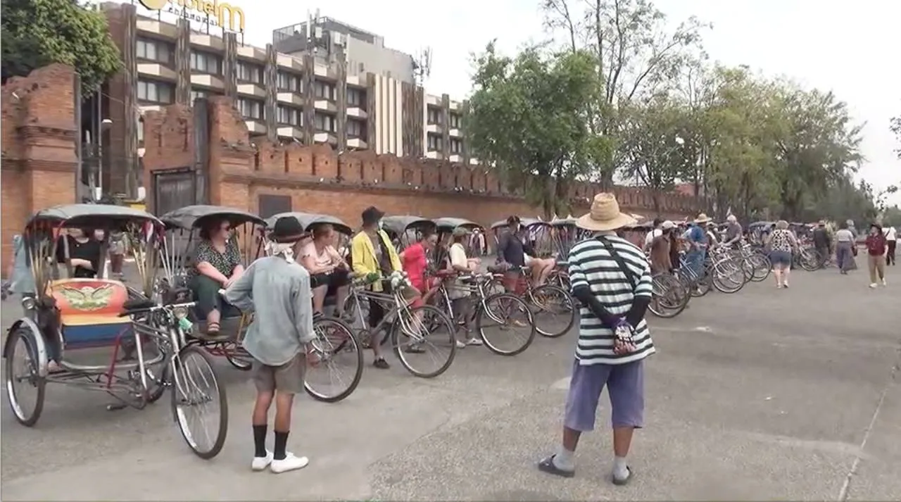 บรรยากาศการท่องเที่ยวในตัวเมืองเชียงใหม่ ช่วงนี้ นักท่องเที่ยวยุโรปนิยมใช้บริการรถสามล้อถีบดั้งเดิม นั่งชมเมืองจากตลาดต้นลำไย แวะถ่ายภาพ บนข่วงประตูท่าแพ แล้วไปสิ้นสุดที่วัดเจดีย์หลวงฯ สนนราคาเที่ยวละ 250 บาท ขณะที่นักปั่นสามล้อเชียงใหม่ เหลือกันอยู่แค่ 30 คัน