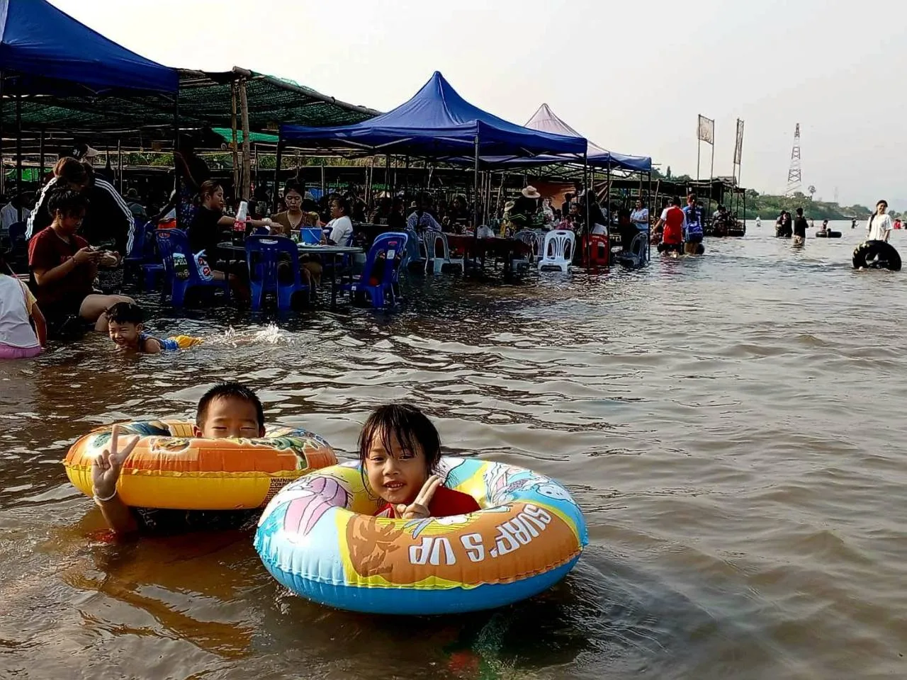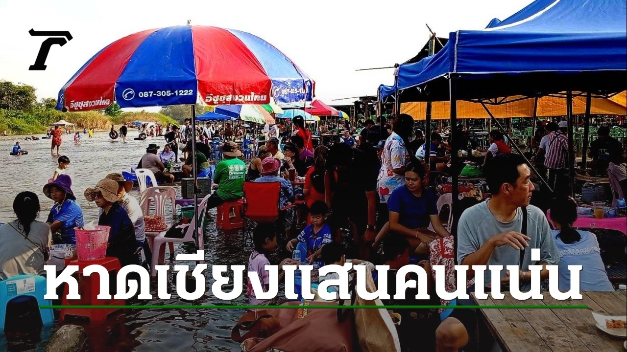 ที่ อ.เชียงแสน จ.เชียงราย แดดเปรี้ยง อากาศร้อนทะลุ 40 องศาฯ ประชาชนแห่เที่ยวหาดเชียงแสน ริมแม่น้ำโขง เพื่อเล่นน้ำคลายร้อน ตั้งวงดื่มกินตามซุ้มร้านอาหาร แน่นแทบทุกร้าน พาเงินสะพัดในชุมชนวันละเป็นล้านบาท ทำให้เศรษฐกิจในพื้นที่ดีมาก
