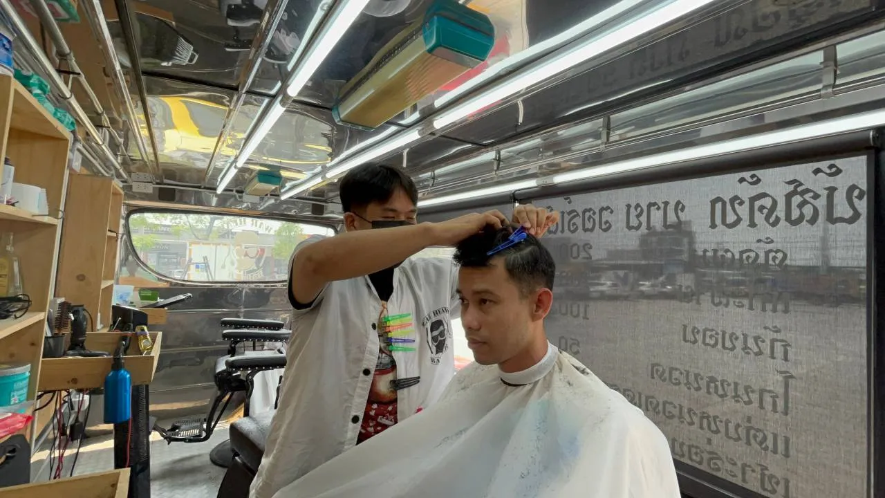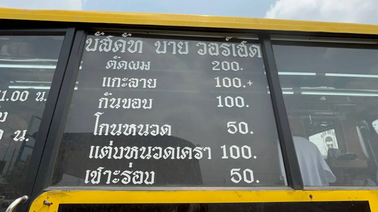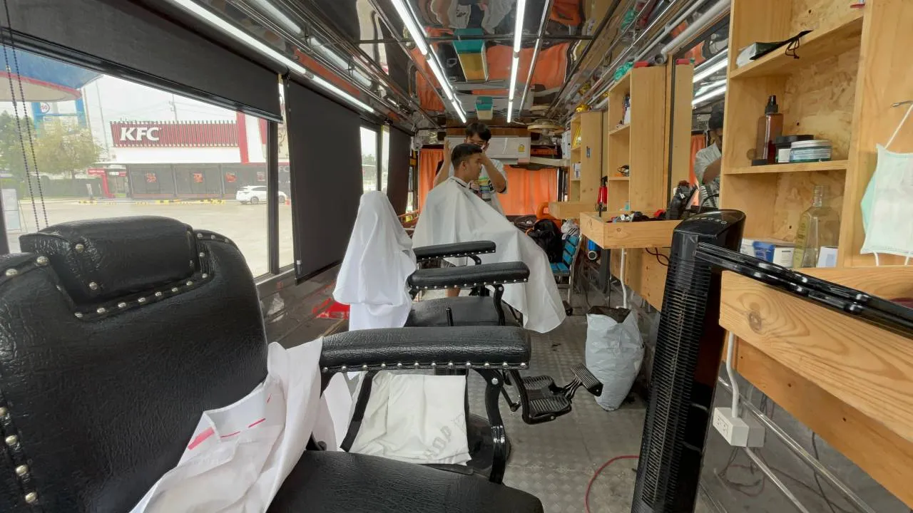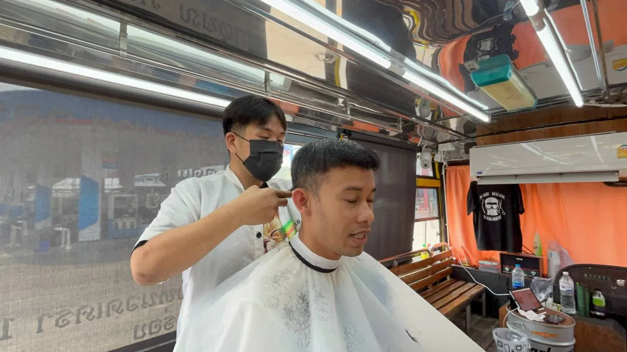 ร้านตัดผมสุดเก๋ นำรถมินิบัส มธ.เก่า ทำเป็นร้านตัดผมแนววินเทจ จอดให้บริการตามปั๊มน้ำมันย่านคลองหนึ่ง จ.ปทุมธานี เริ่มต้นหัวละ 200 บาท และจะเพิ่มไปเรื่อยๆ ขึ้นกับความยากง่ายในการออกแบบทรงผม