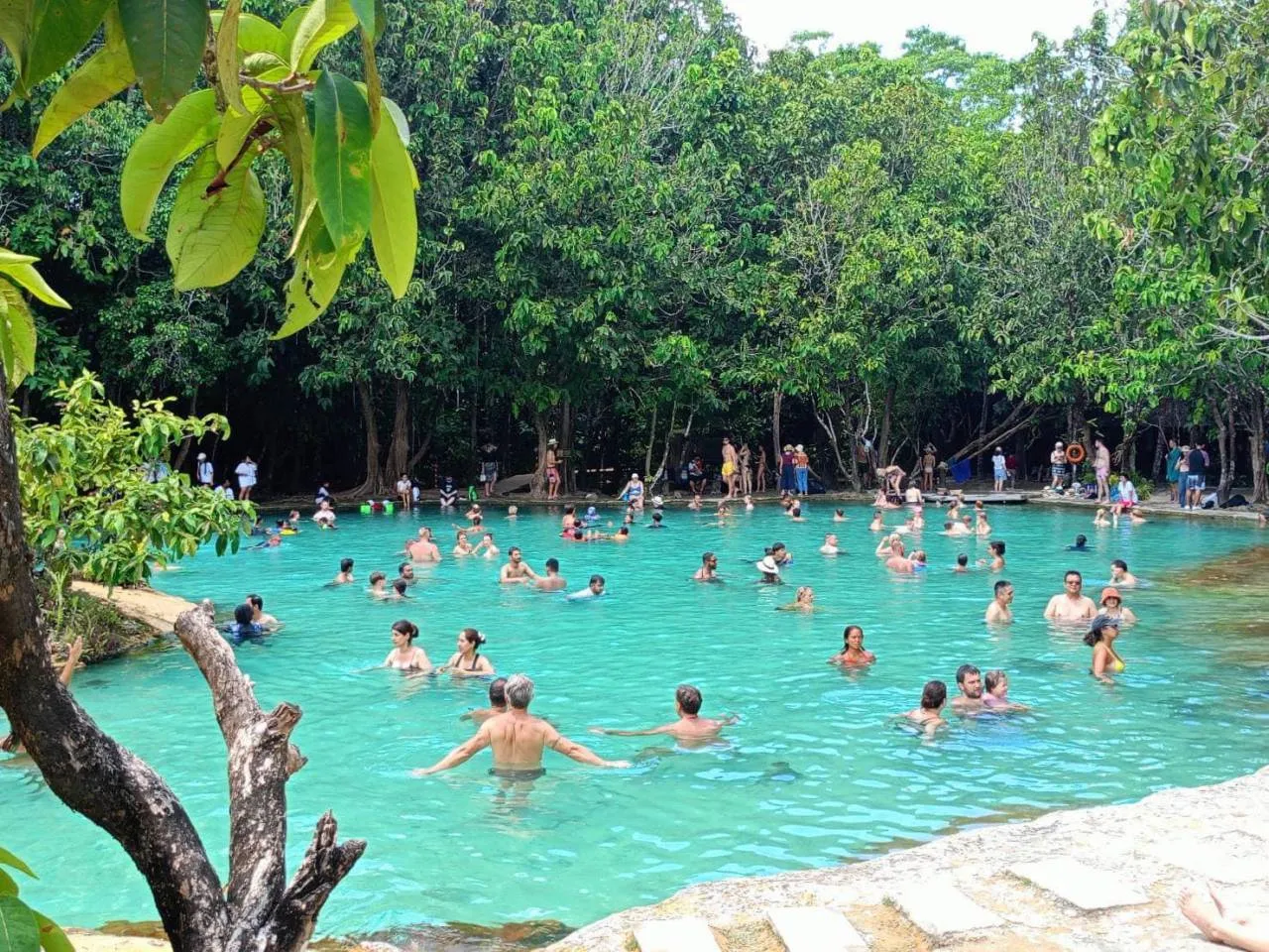 เมื่อวันที่ 9 เม.ย. 2567 ผู้สื่อข่าวรายงานว่า จากสภาพอากาศของ จ.กระบี่ ที่ร้อนจัดในช่วงนี้ ส่งผลให้บรรดาชาวบ้าน และนักท่องเที่ยว ต่างเดินทางไปหาแหล่งท่องเที่ยวที่สามารถคลายร้อนได้ โดยที่กระบี่ จุดที่ยังคงได้รับความนิยมจากทั้งชาวบ้านในพื้นที่ และ นทท.ทั้งไทยและต่างชาติ ยังคงหนีไม่พ้น “สระมรกต” ใน ต.คลองท่อมเหนือ อ.คลองท่อม จ.กระบี่